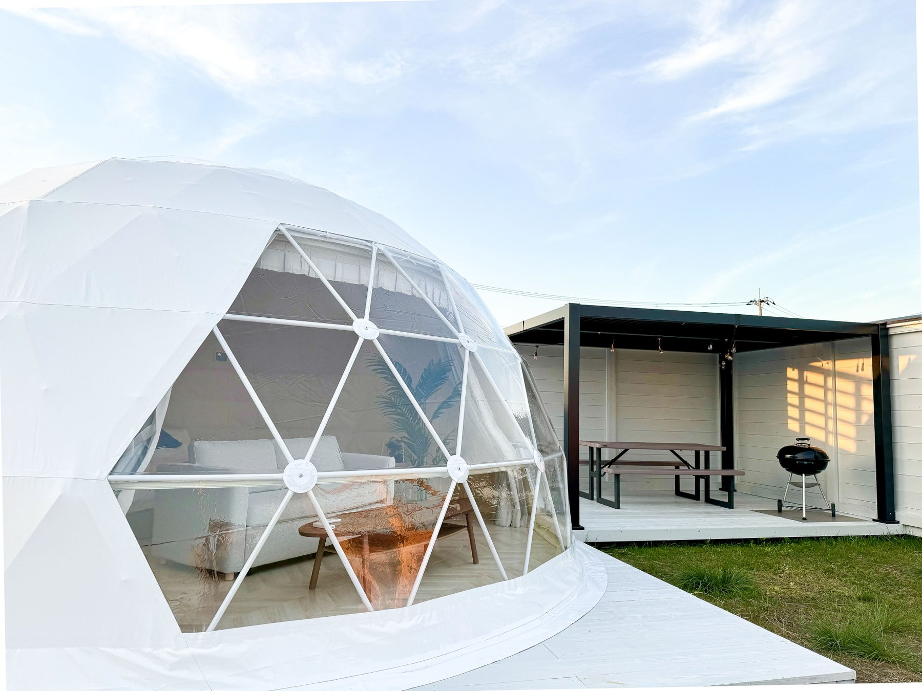 昨年オープンしたグランピングドーム「ルーフトップヴィラ・スパークリング」のご好評を受け、新たにリーズナブルな価格帯で手軽に利用ができる「ドーム・グランピングヴィラ」を新設しました。