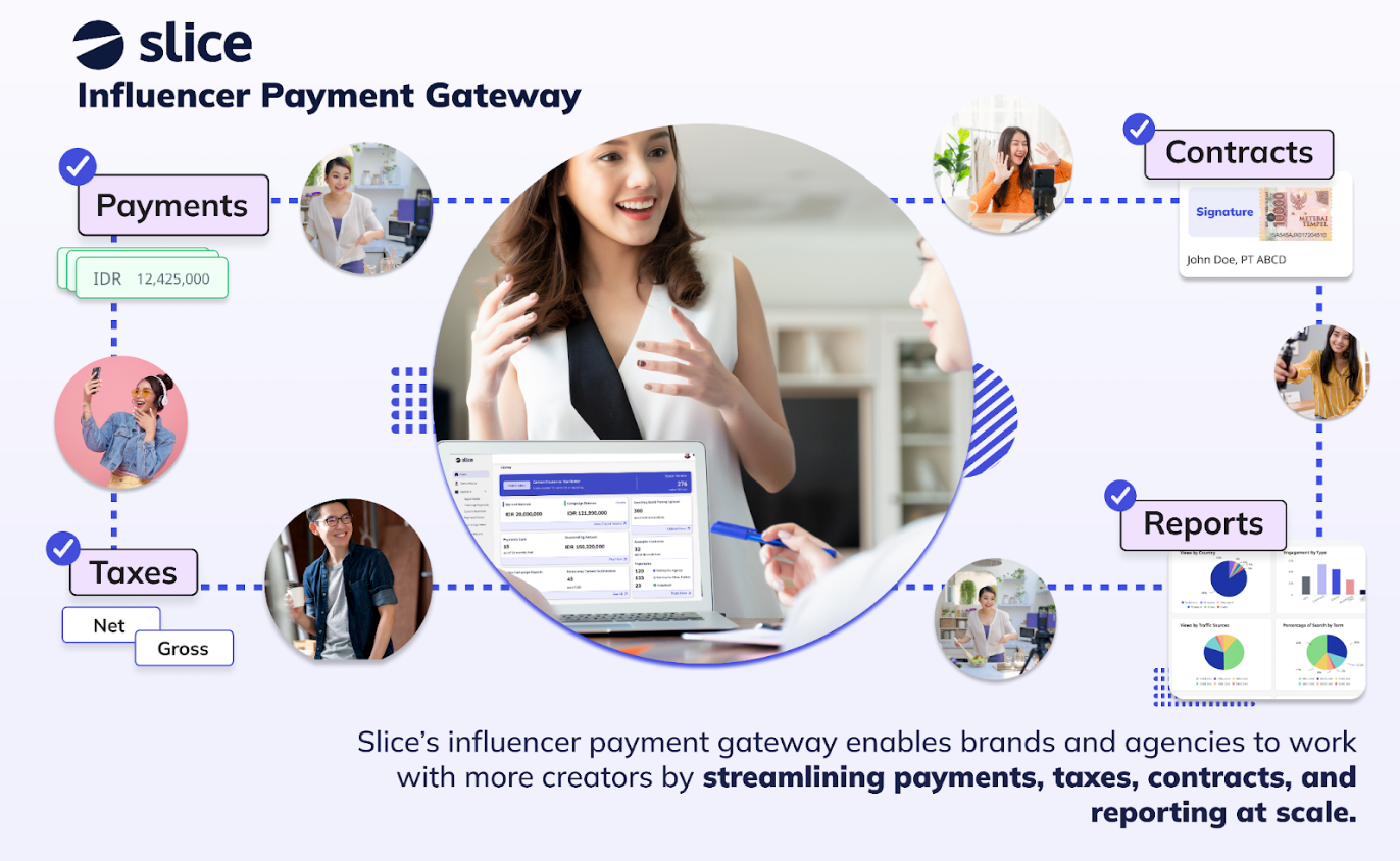 Sliceが持つインフルエンサー・ペイメント・ゲートウェイを通じて、支払い・税金・契約・レポーティングを合理化することができます。これにより、ブランドや代理店がより多くのクリエイターとスムーズに連携することを可能にします。