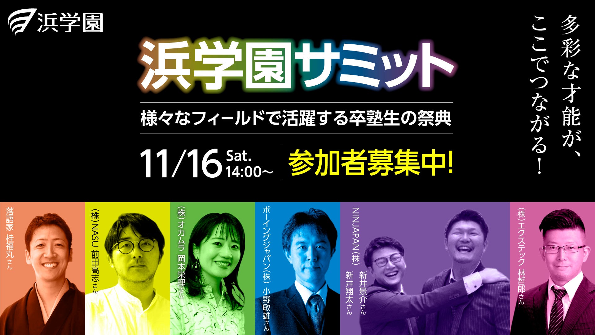 灘中合格者数日本一の「浜学園」、社会にインパクトを与える学習塾のアルムナイコミュニティへ/11月16日(土)各界のフロントランナーが新宿に集結!