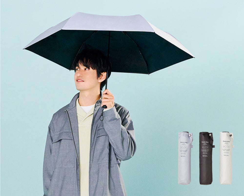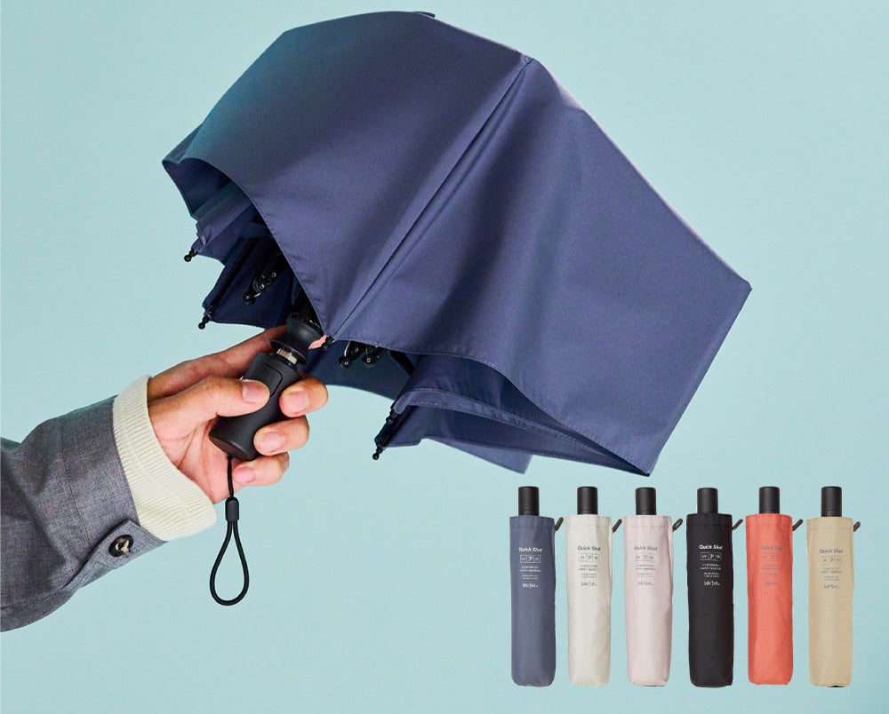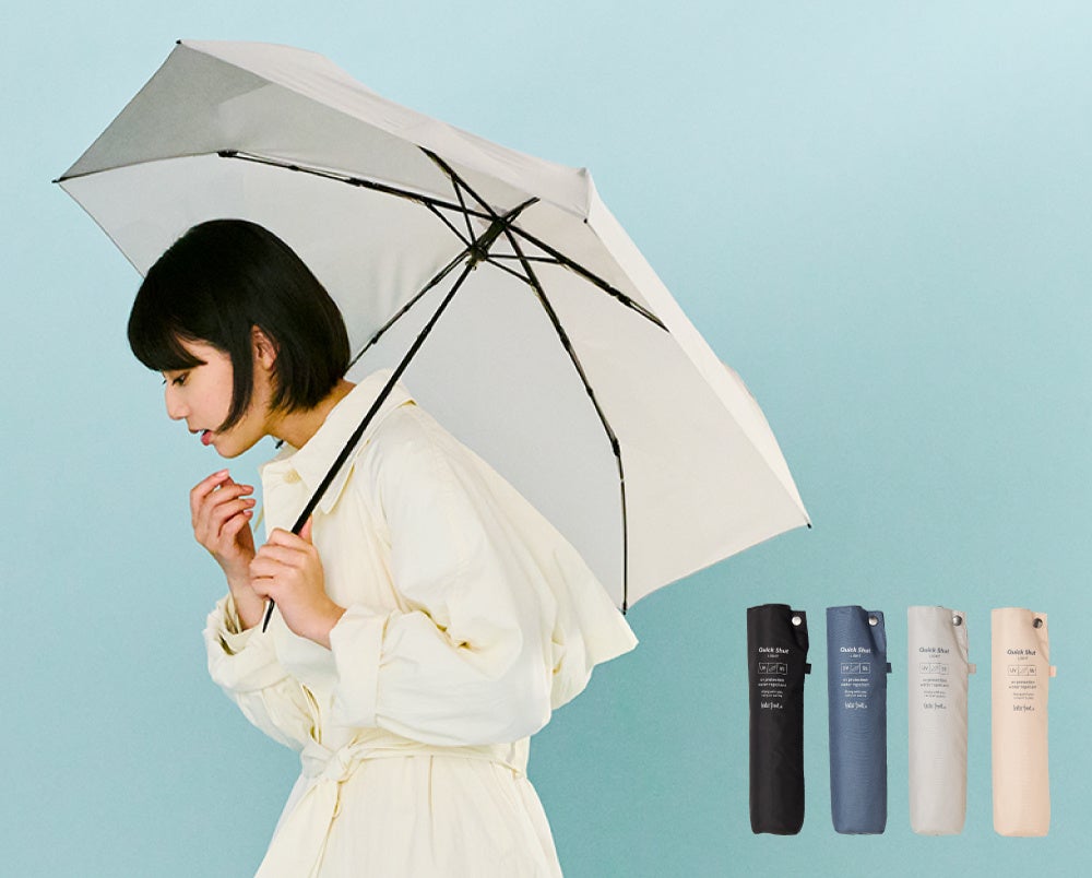 特殊なシェイプメモリー機能で圧倒的にたたみやすい「クイックシャット」。折りたたみ傘では当たり前の"たたみにくい"を解消。昨年数多くのメディアで紹介された自動開閉傘「クイックシャット 自動開閉 折 55cm 」に、24年新たに3商品を加え待望のシリーズ化。