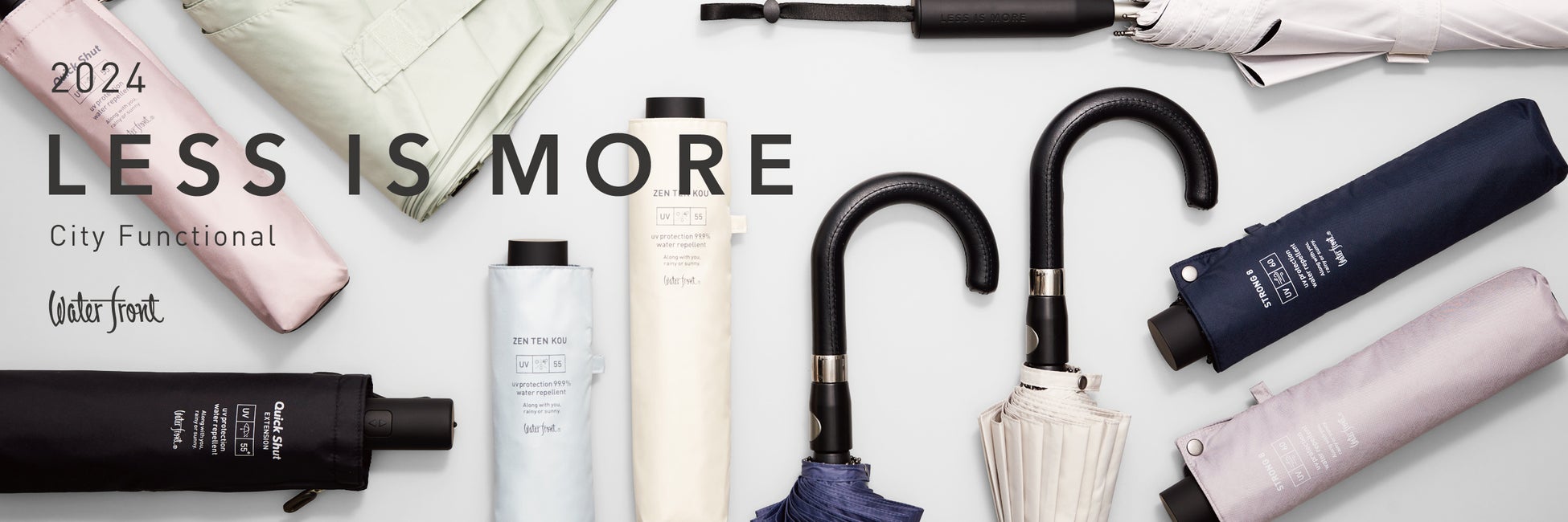 日々傘を持つことを楽しんでほしいから、傘に求められるシーンや機能を徹底的に追求。洋服を着替えるように、部屋の模様替えをするように、傘もその日の気分や天候、オケージョンに合わせて持ち替える。万能な1本を持つことも効率的でよいけれど、今の気持ちに寄り添う個性豊かな傘を、それを選ぶ楽しさを、「LESS IS MORE」シリーズがご提案。