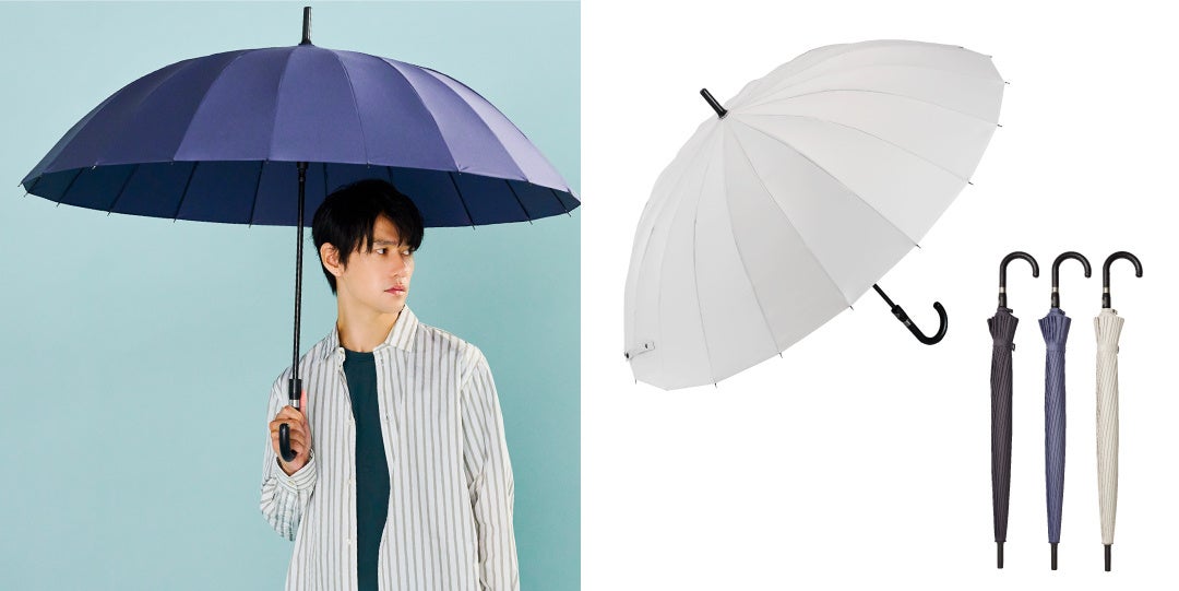 さらに2024年は長傘も登場。スタイリッシュなストレートハンドルと太めのシャフトで、強い雨風にも負けない仕様に。日傘としても雨傘としても使いやすい親骨60cm。
