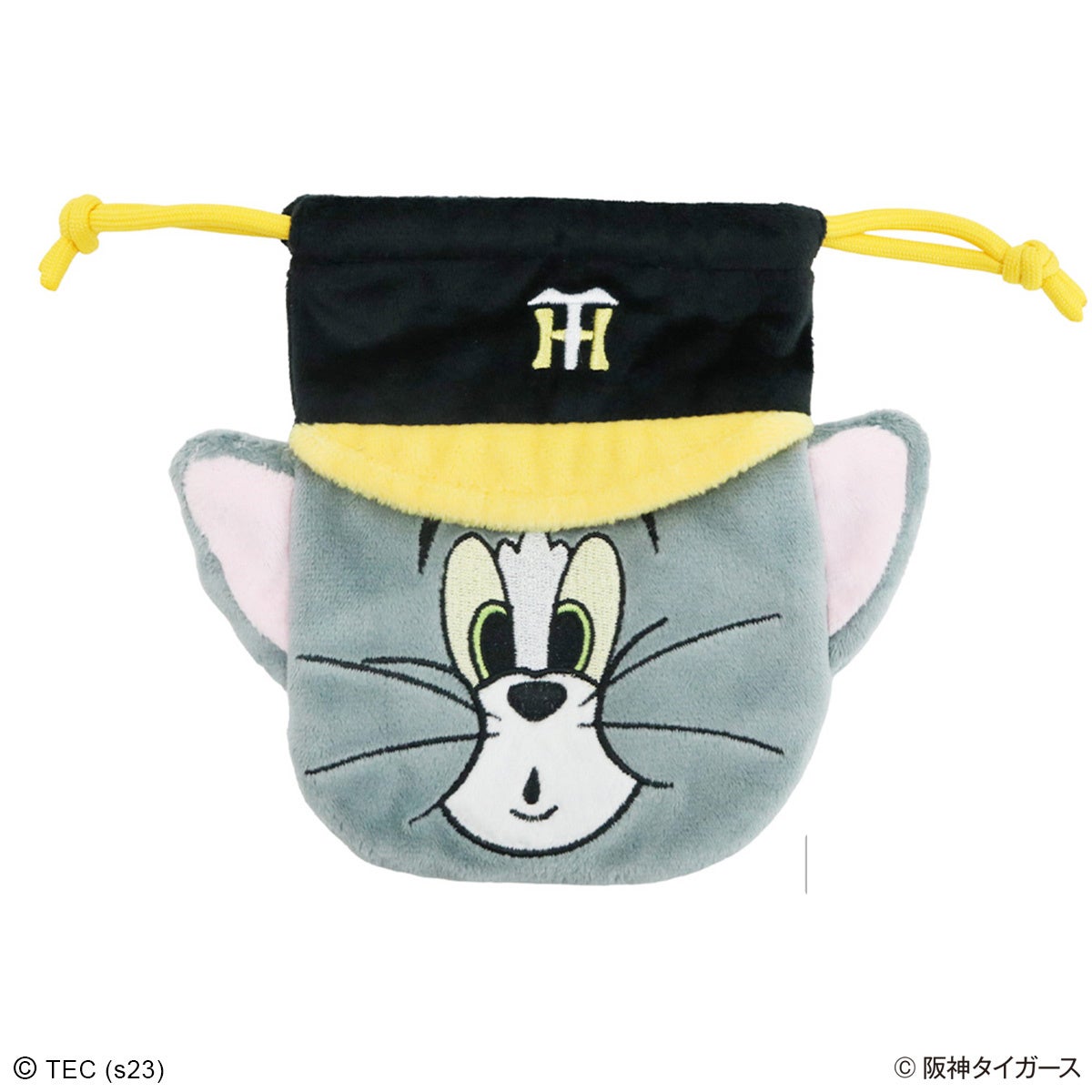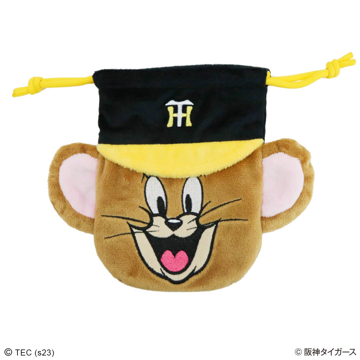 トムとジェリーが阪神タイガースのキャップを被ったデザインのぬいぐるみ巾着。
