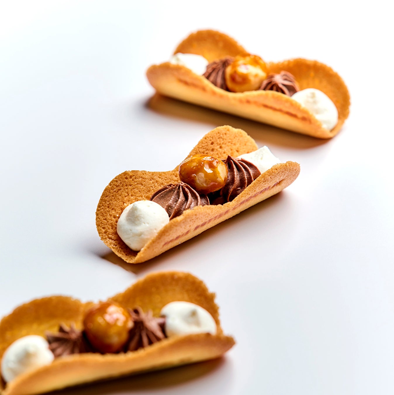 スイーツ全体を包み込むようなふんわり食感を追求し、一から配合を見直しました。生地・クリーム・ショコラの三位一体となる関係をお楽しみいただけます。
