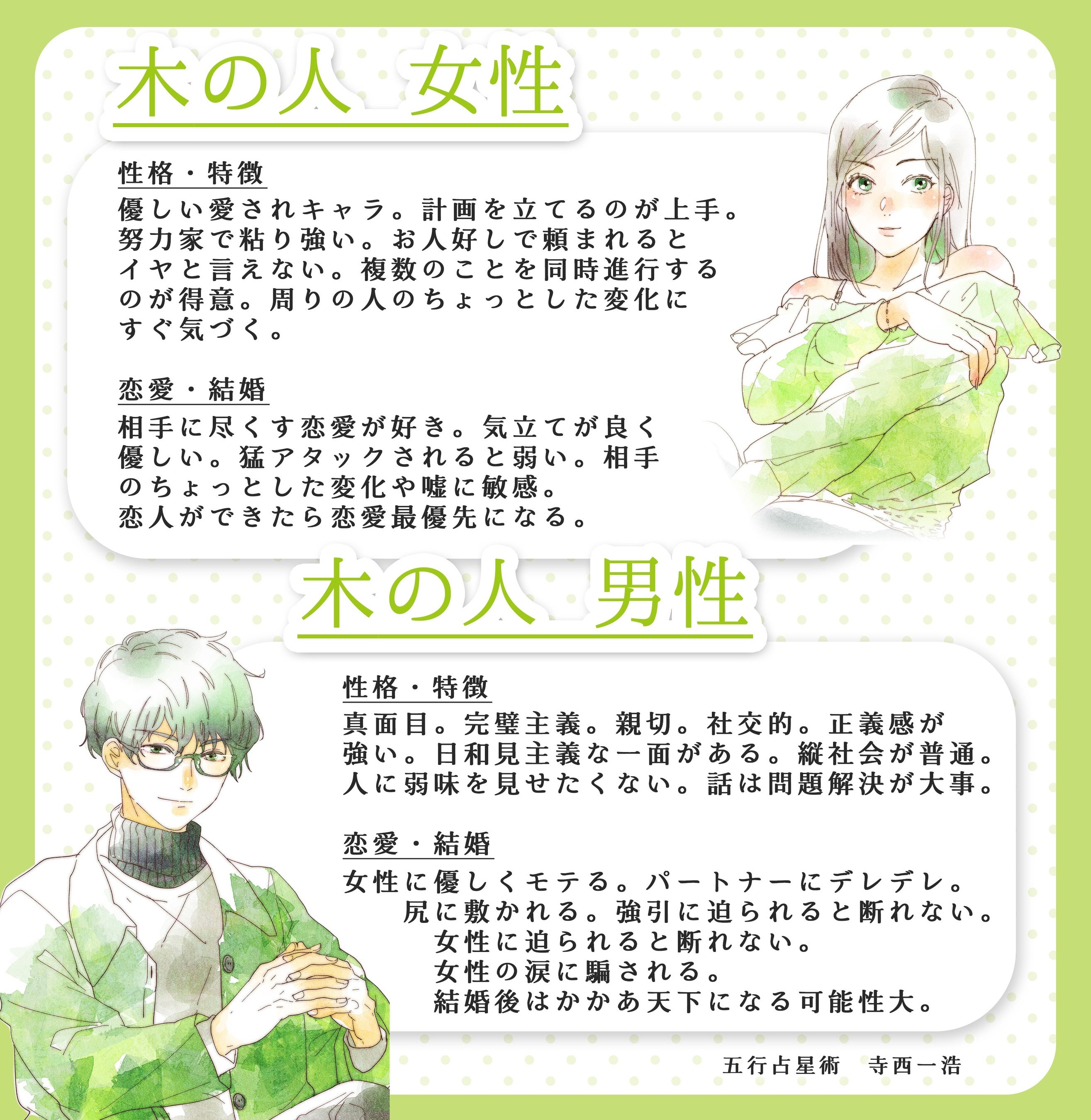作家・映画監督の寺西一浩が、自然界に存在するすべてのものを「木」「火」「土」「金」「水」の五要素に分類する【五行説】を応用し、男女の違いを反映したオリジナルの占星術本を発表し人気だ。