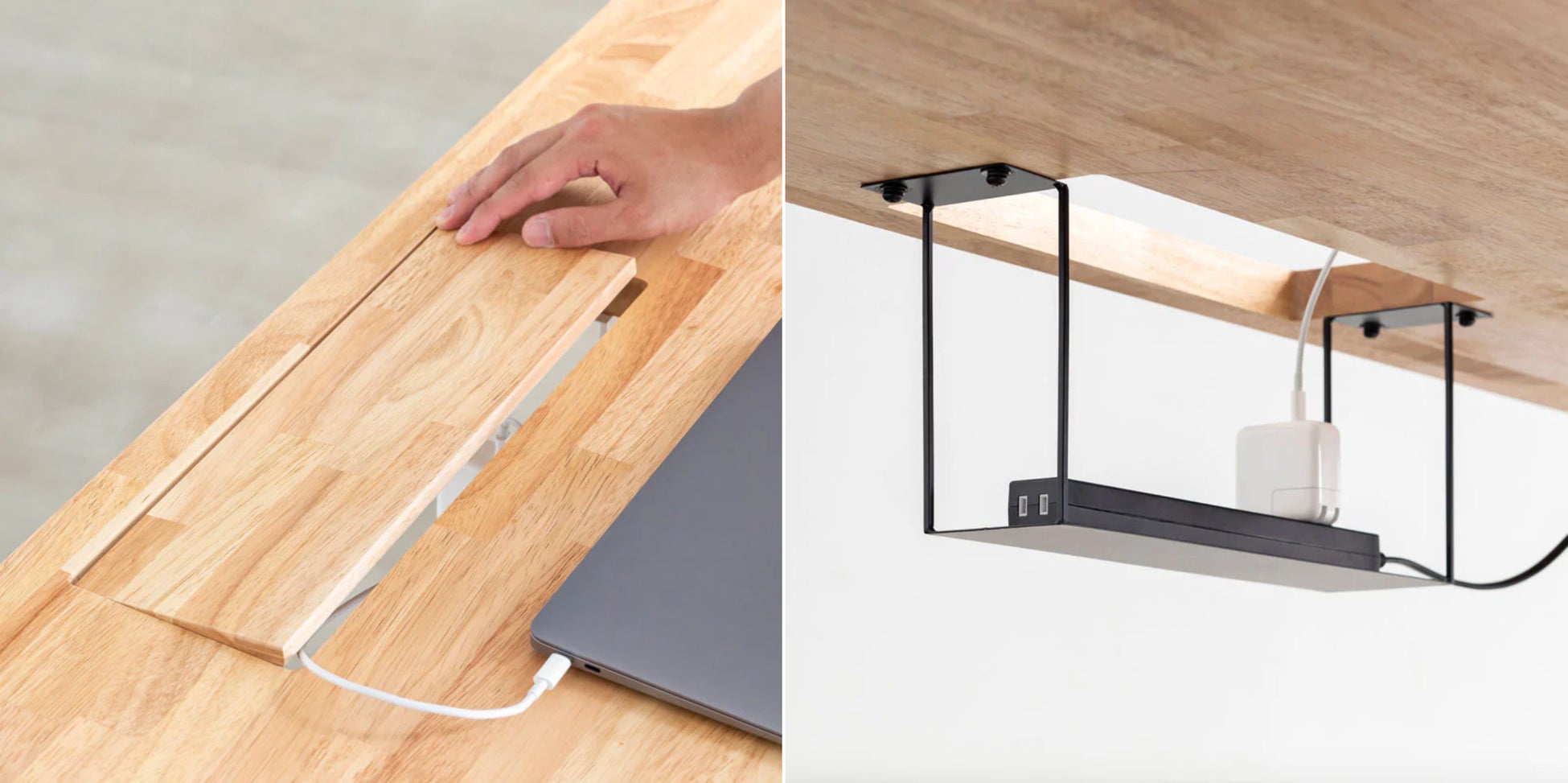 電源タップを置くことのできるトレーと、専用の配線孔を備えたBlock&Trayシリーズも同時展開。こちらは複数のモニターやガジェット関連などを整理整頓し、デスク環境を充実させたい方におすすめです。スマート電動昇降脚のホワイト脚とB&Tホワイトの組み合わせにつきましては、11月末に販売開始予定です。