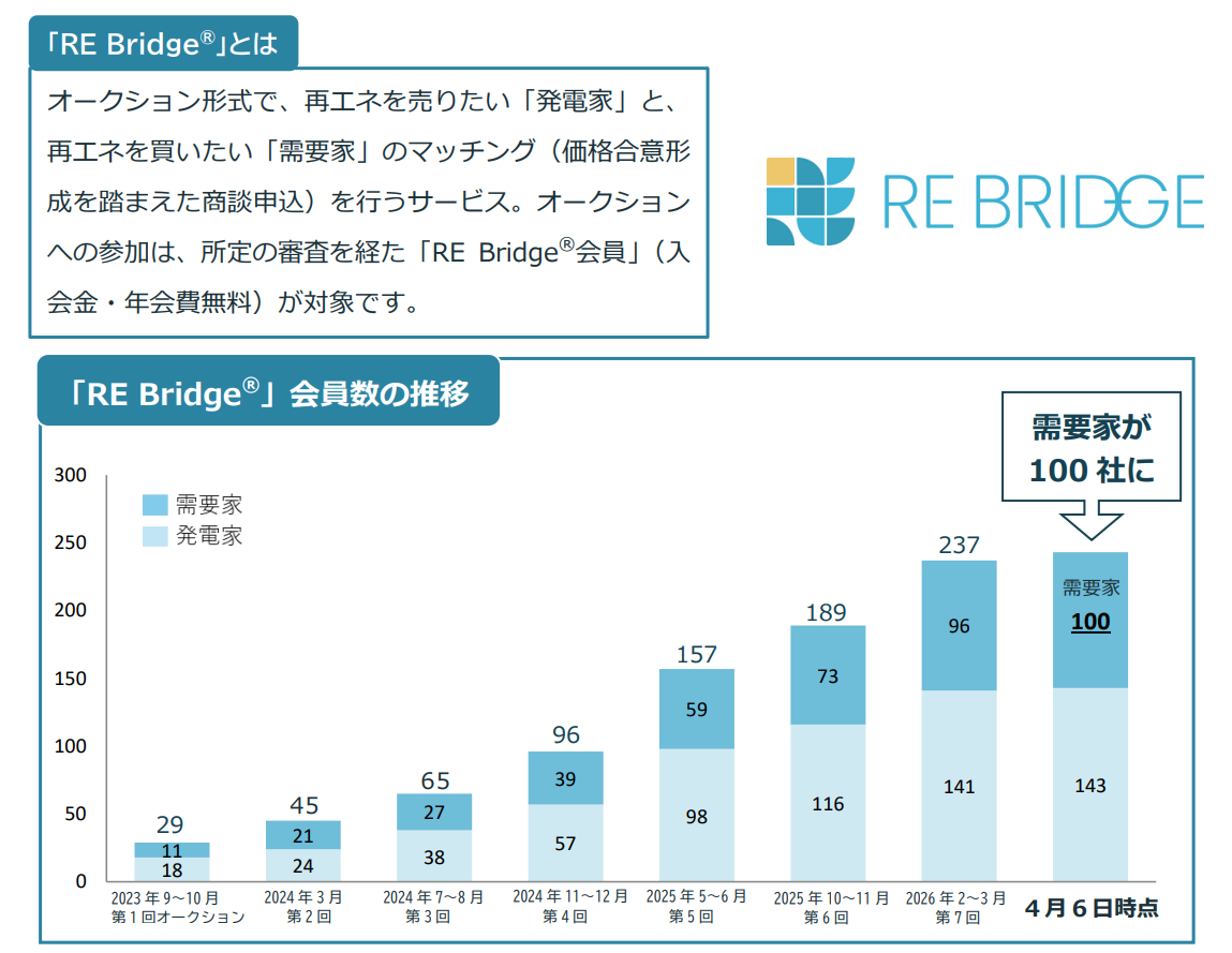 このたび「RE Bridge®」に登録している需要家企業の会員数が100社を突破しました。