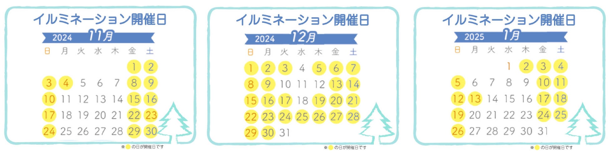 開催日:11月1日(金)~4日(月休)、8日(金)~10日(日)、15日(金)~17日(日)、22日(金)~24日(日)、29日(金)、30日(土) / 12月1日(日)~3日(火)、5日(木)~9日(月)、13日(金)~17日(火)、19日(木)~30日(月) / 1月2日(木)~5日(日)、10日(金)~13日(月祝)、17日(金)~19日(日)、24日(金)~26日(日)