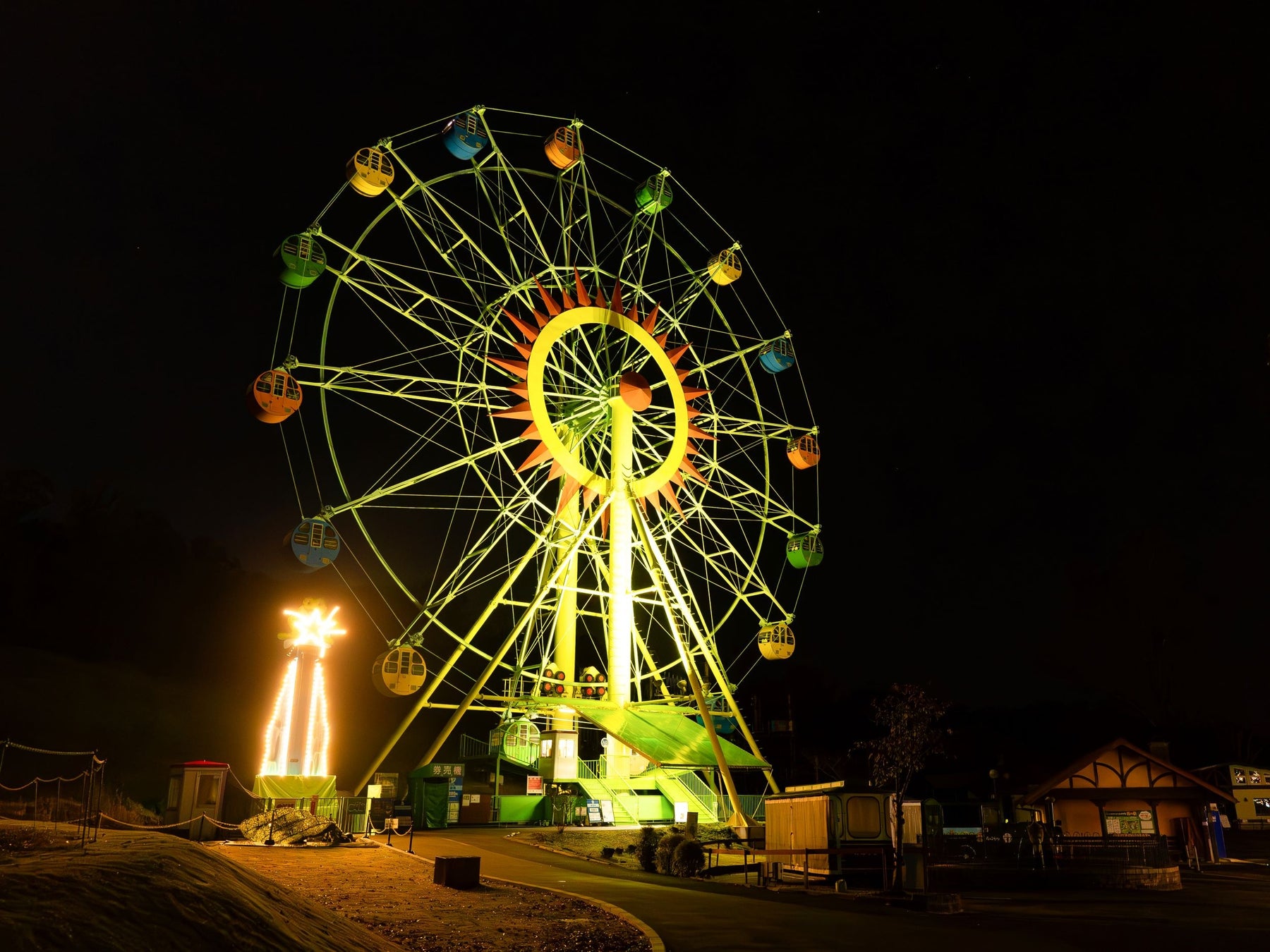 観覧車からはイルミネーションと夜景を楽しむことができ、静かな夜空と共に心に残る特別なひとときを過ごせます。イルミネーションに彩られた幻想的な雰囲気の中でメリーゴーランドや芝すべりなど、昼間とは違った非日常的な楽しさを味わうことができます。
