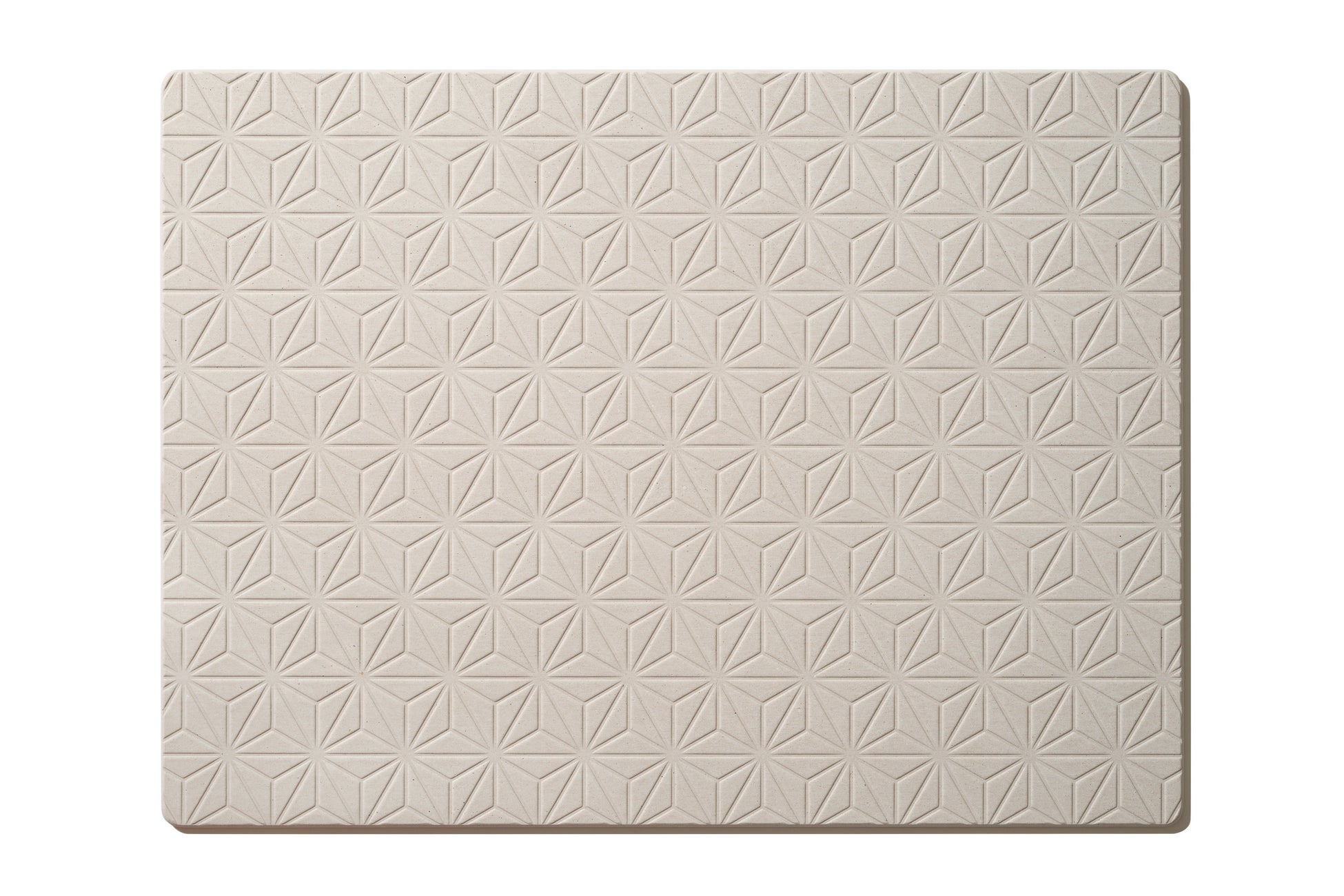 今回の新柄はさらに凹凸をはっきりと表現させることで、足触りの良さと角度によって柄の表情に変化が出る、高級感のあるエコで時短な珪藻土バスマットです。