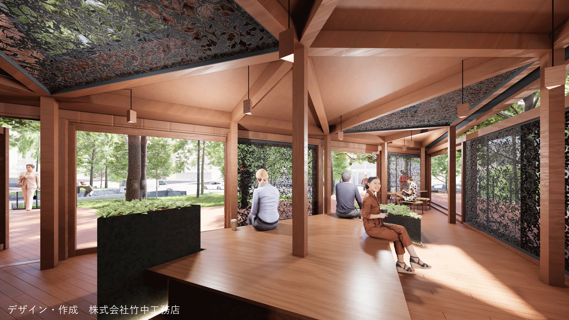 建物前面に広がる緑地空間を最大限に活かし、カフェ・オフィス・イベント空間を付加することで、地域に開かれた空間へと生まれ変わります。