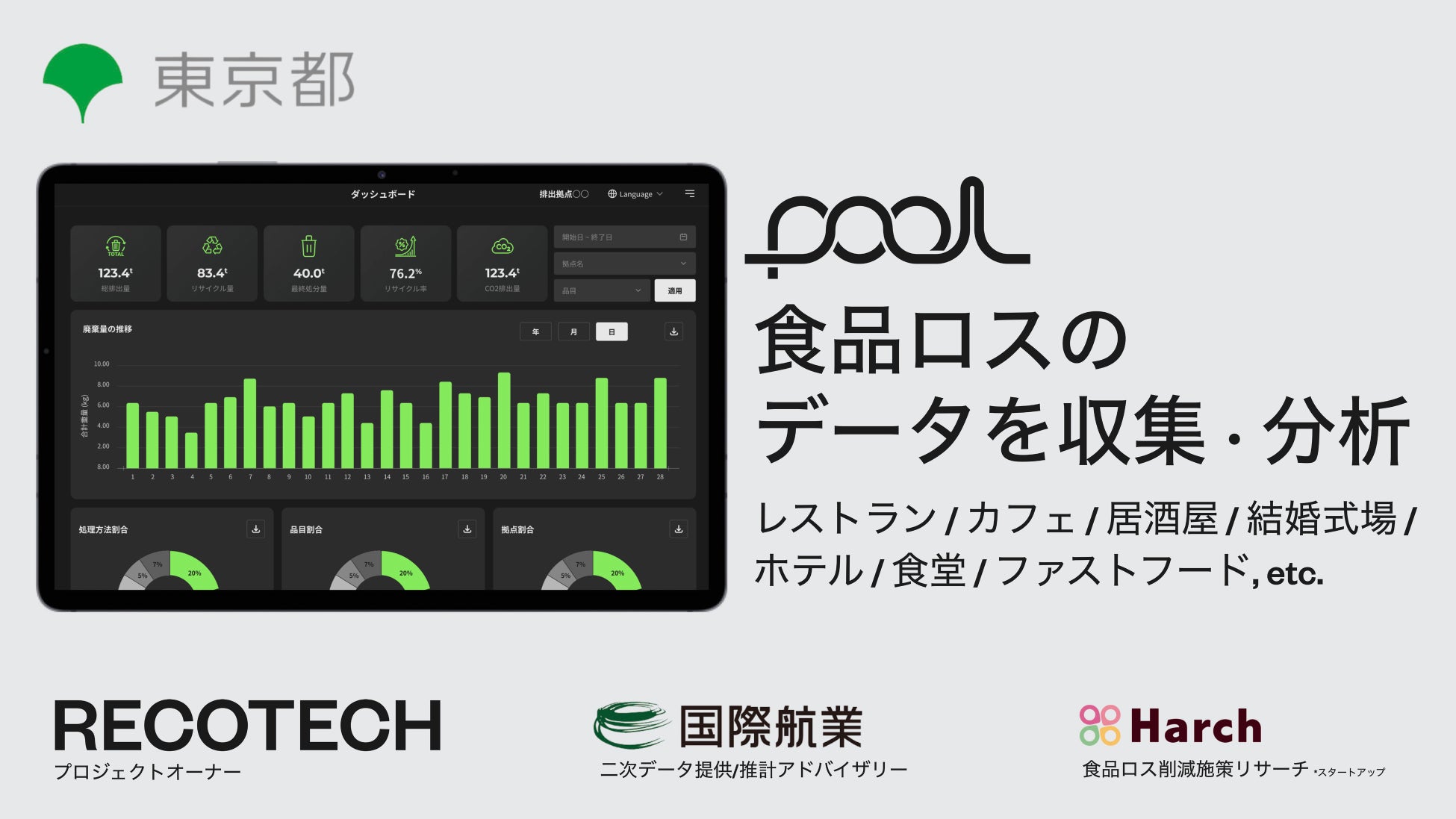 サーキュラーエコノミーを実現するデータプラットフォーム「pool」を提供するレコテック株式会社(本社:東京都千代田区、代表取締役:野崎 衛、以下「RECOTECH」)は、東京都の「アフターコロナにおける外食産業の食品ロス削減推進事業」に採択されました。本事業を通して、都内外食産業の食品ロス発生量についてpoolでの実測データを基に2030年度まで推計するとともに、都内外食産業における食品ロス削減対策の実施状況等について調査します。