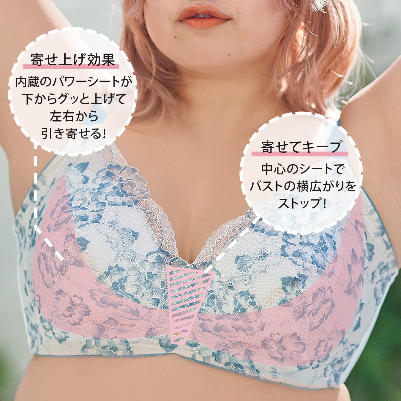 中心のシートでバストの横広がりをストップし美胸をキープします!
