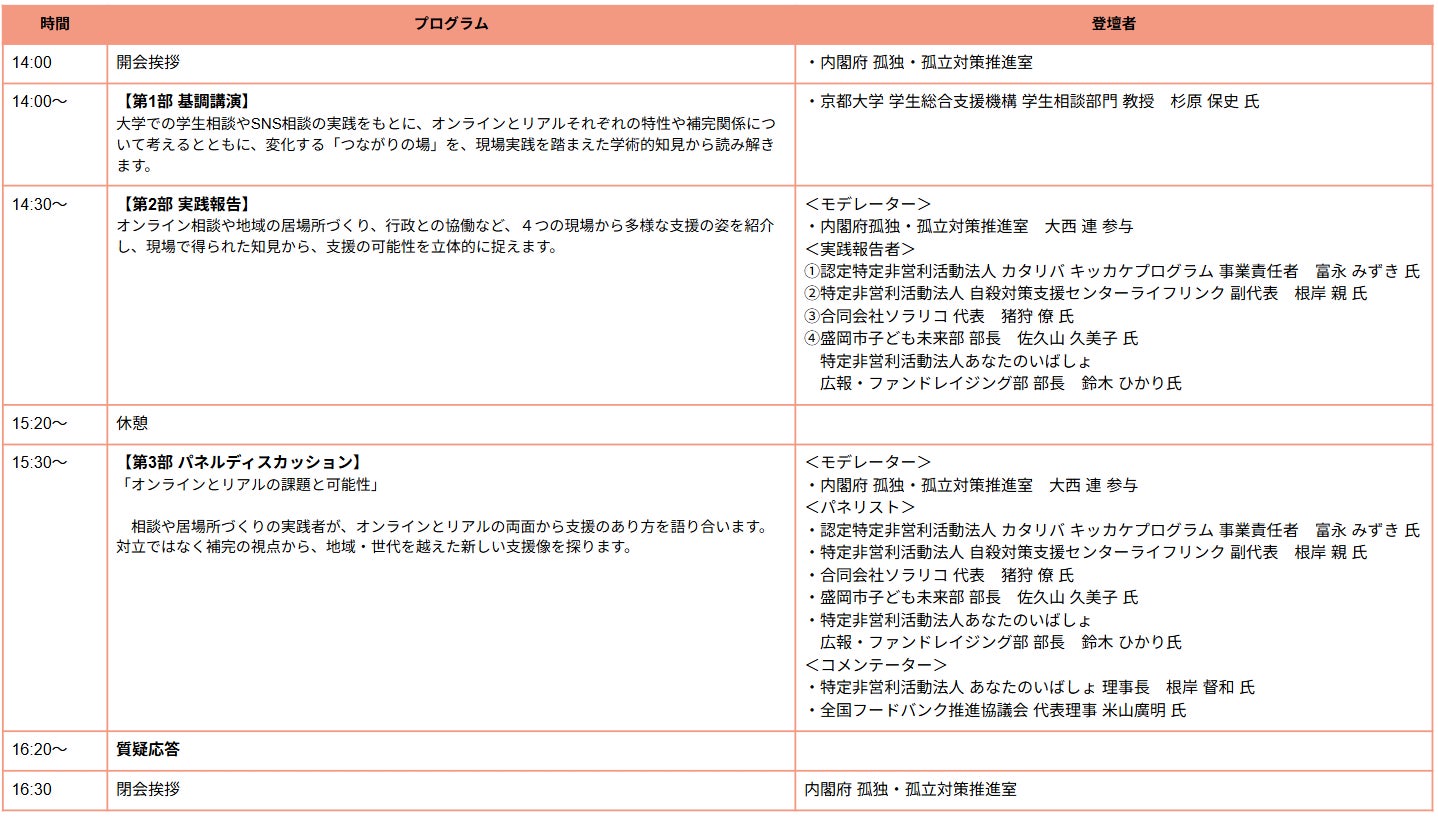 ※ 本シンポジウムは、一般社団法人RCFが受託する令和7年度「孤独・孤立対策に資するNPO法人等の連携促進等に関する調査研究事業(内閣府)」の一環として実施しています。