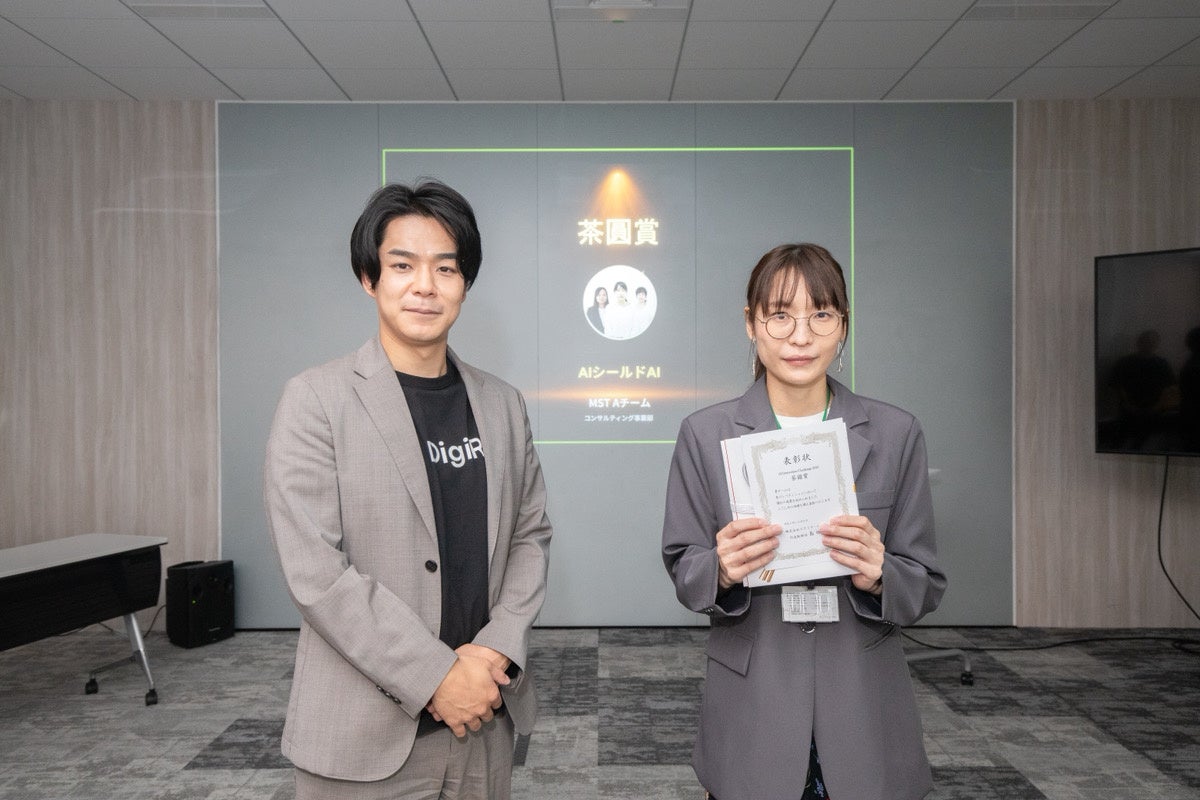 表彰式では事前審査により、「AIプロ活用賞」「技術活用賞」「目標達成賞」「業務貢献賞」「発展可能性賞」の5つの表彰を行い、その後、「最優秀賞」「社長賞」「茶圓賞」「優秀賞」にノミネートされたチームが審査員に向けにプレゼンテーションを行い、その場で最優秀賞が決定されました。