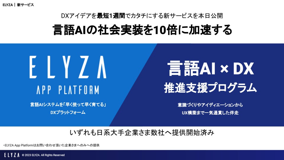 - 新サービス「ELYZA App Platform」および「言語AI×DX推進支援プログラム」の利用希望受付を本日より開始