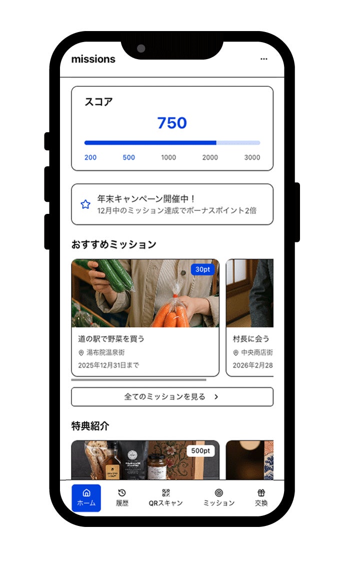 さらに、「ミッション型ラリー」として、ユーザーの地域での行動をゲームのように楽しめる機能を提供。