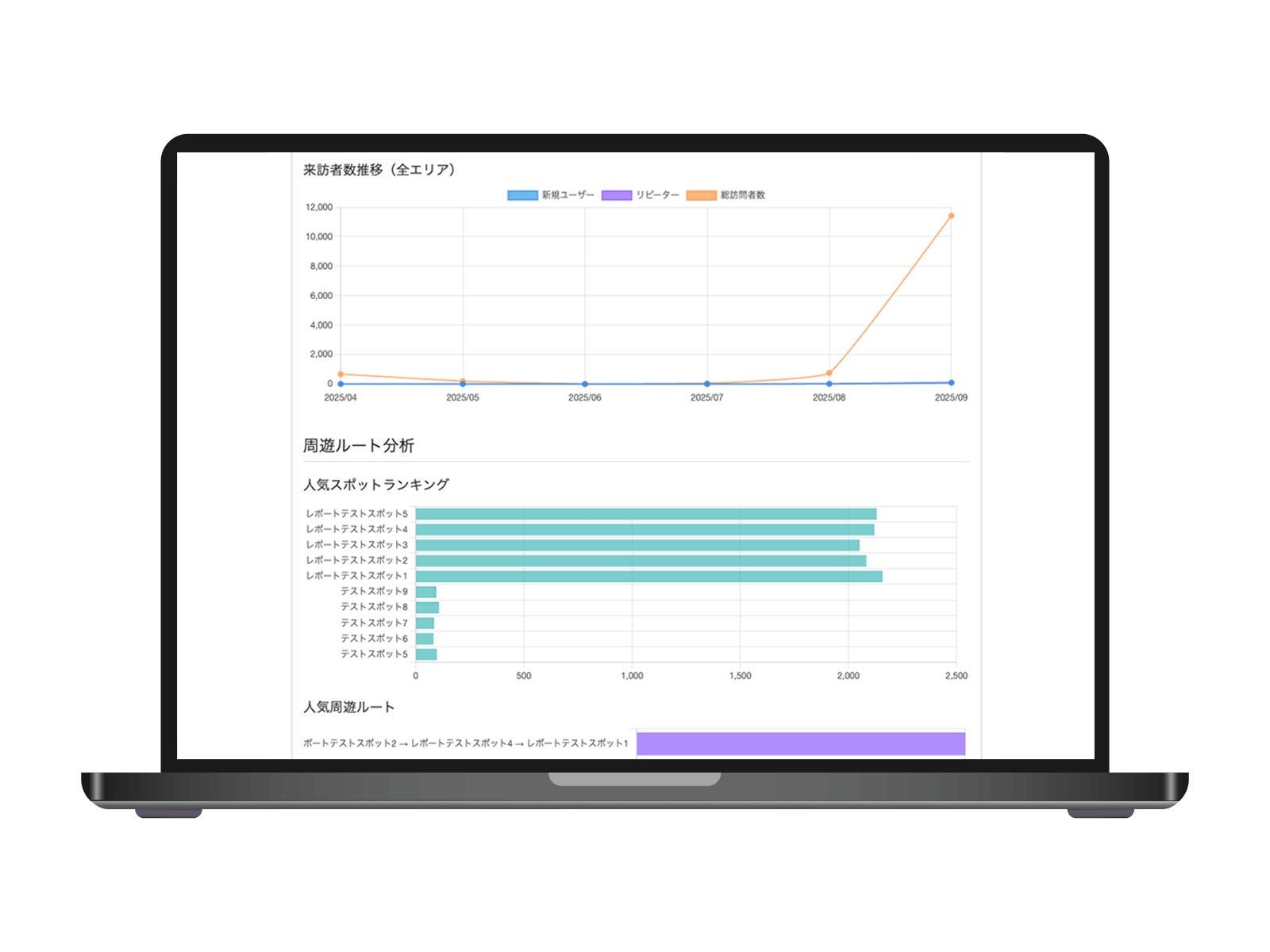 ユーザーの行動データに基づき、施策の効果を分析するレポート機能を提供します。これにより、企画運営者はAIのサポートを受けながら、地域に最適な次の一手を検討できます。