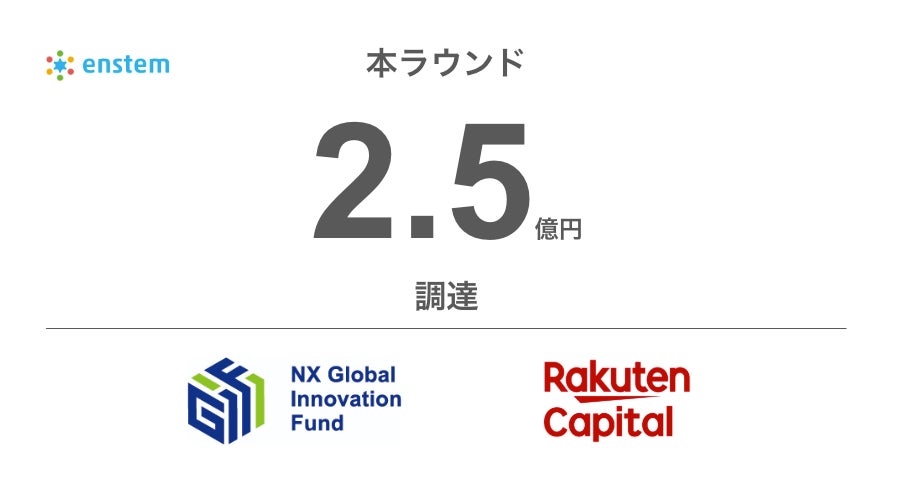 株式会社enstem(本社:東京都中央区、代表取締役社長:山本寛大、以下当社)は、NXグローバルイノベーション投資事業有限責任組合(以下、NXグローバルイノベーションファンド)、および楽天グループ株式会社(以下、楽天)のコーポレートベンチャーキャピタルである楽天キャピタルより、総額1.1億円の追加出資を受けたことをお知らせいたします。