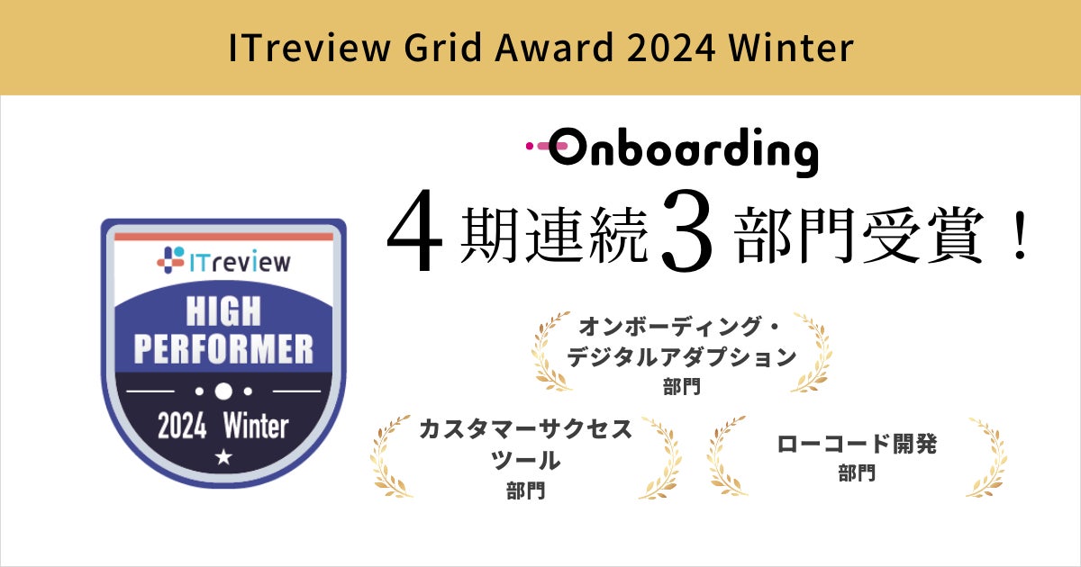 「オンボーディング・デジタルアダプション」、「カスタマーサクセスツール」、「ローコード開発ツール」で4期連続となるアワード受賞