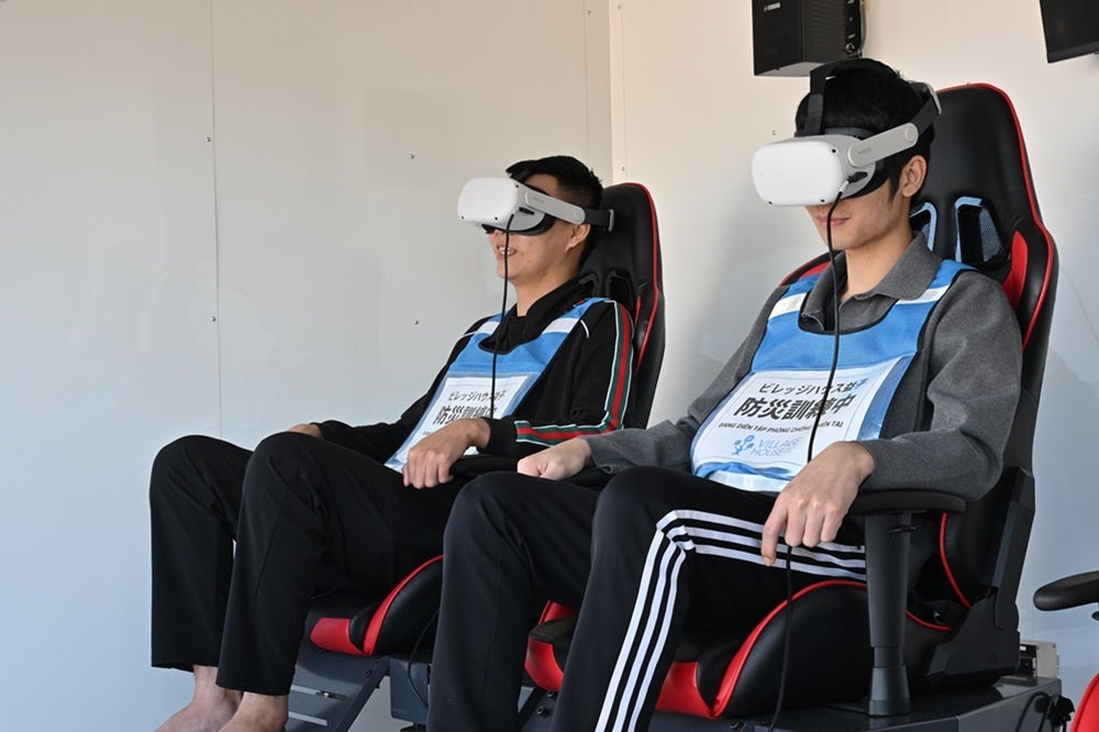 当日は、「ビレッジハウス益子」を社宅としている企業に勤務するベトナム人技能実習生26人が参加し、安心安全な暮らしの支援の一つとして、地域のゴミ出しルールをはじめとする暮らしのマナーについて学びました。続いて、日本の災害情報や備えの重要性についての講義、地震発生時に身を守る動作「シェイクアウト訓練」を行い、後半はVR防災体験車を使って地震を疑似体験することで、防災への意識を高めるきっかけとなりました。