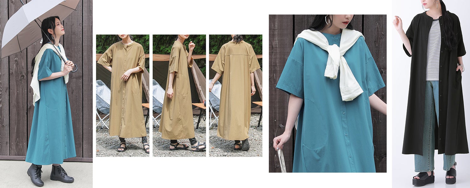 多機能なのにお洒落まで叶うここだけのバンドカラーワンピースです。