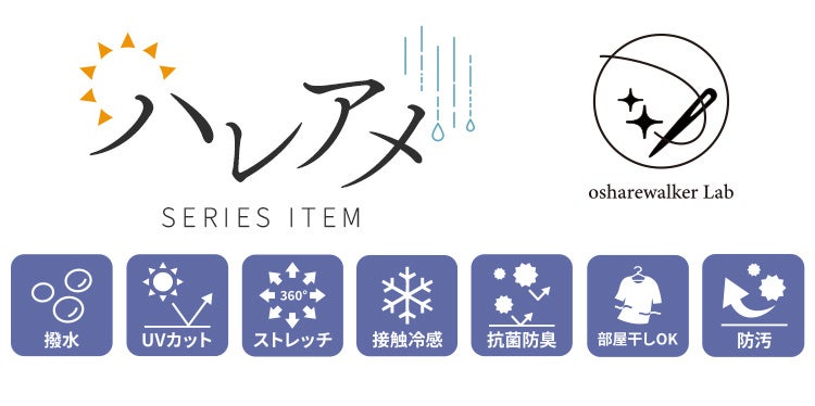 オシャレウォーカー発の晴れの日も雨の日も着たくなる機能が豊富な素材を使用した新しい商品シリーズです。