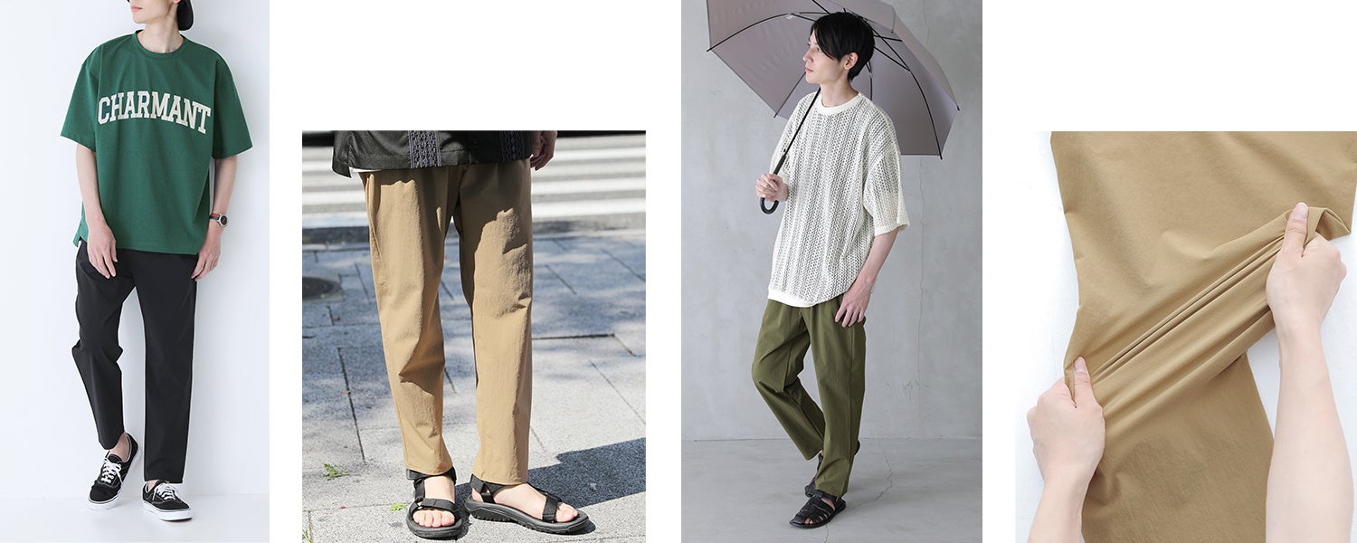 また、レディース、メンズそれぞれで商品を展開し、テーパードパンツやハーフパンツ、ワンピースなど、シーンに合わせてお選びいただけるシリーズになっています。