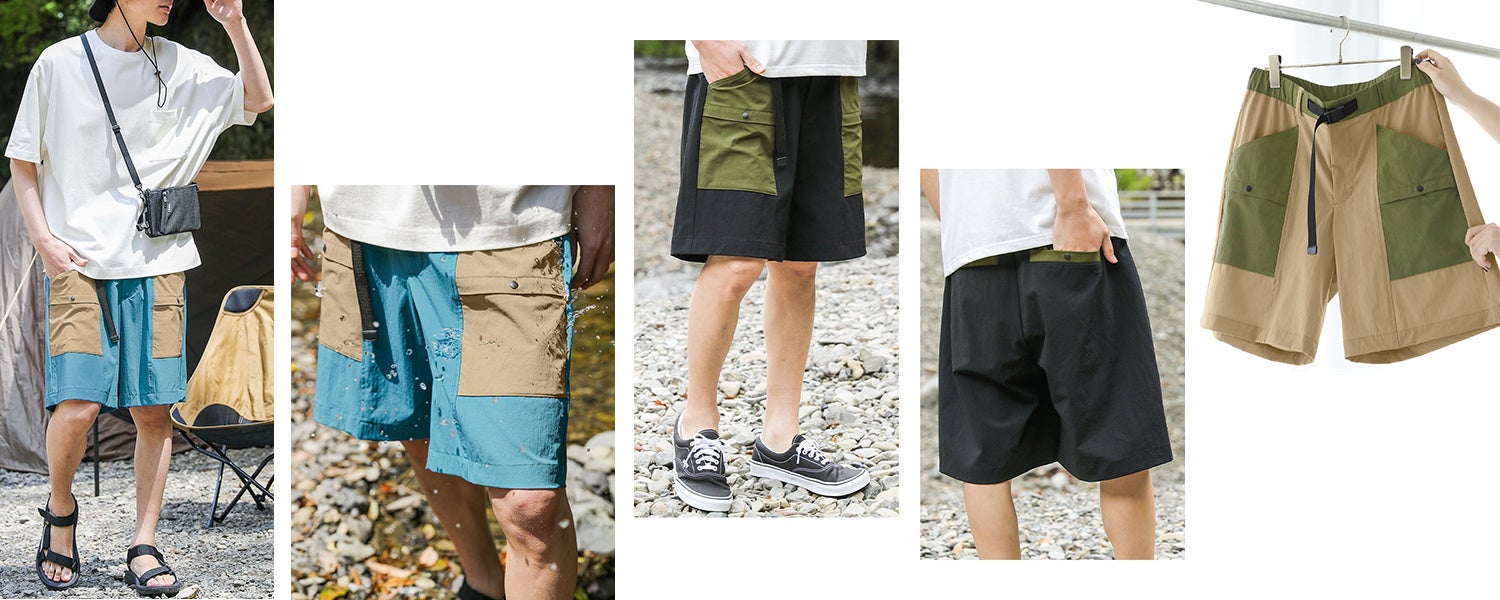 配色とベルトがお洒落なメンズのハーフパンツです。