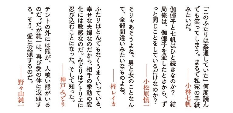 「このふたりは姦通していた」何度読んでも笑ってしまう。まるで私宛の手紙みたいだ。 ――小林七帆