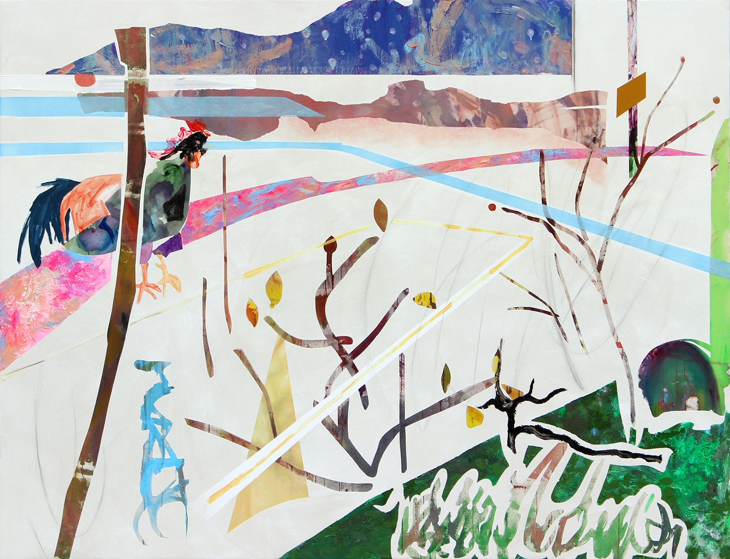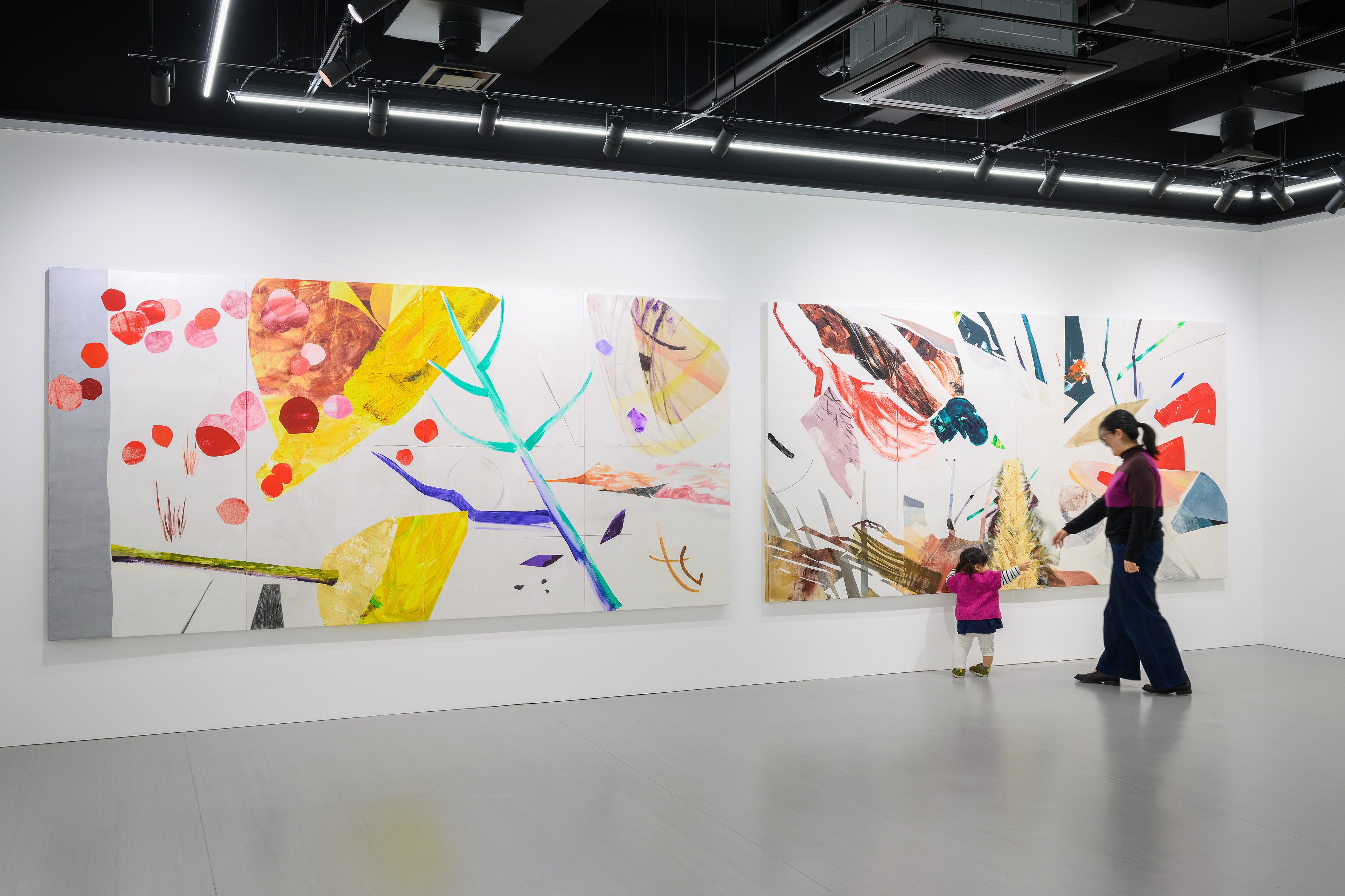 本展はこうした彼女の近年の意識を引き継ぎつつ、制作をさらに他者との関わりへとひらいていく試みです。会期前半の4月25日(土)から5月27日(水)までは滞在制作を行い、会場内をアトリエとして公開します。来場者は制作中の作家と自由に交流できるほか、キャンバスに自由に絵を描き加えることのできる参加型の取り組みも予定しています。5月30日(土)からは、こうした滞在制作と共同的なプロセスを通じて生まれた新作を中心に展示します。そのほか、赤松が娘と共作したドローイングや過去のコラージュ作品群も紹介します。