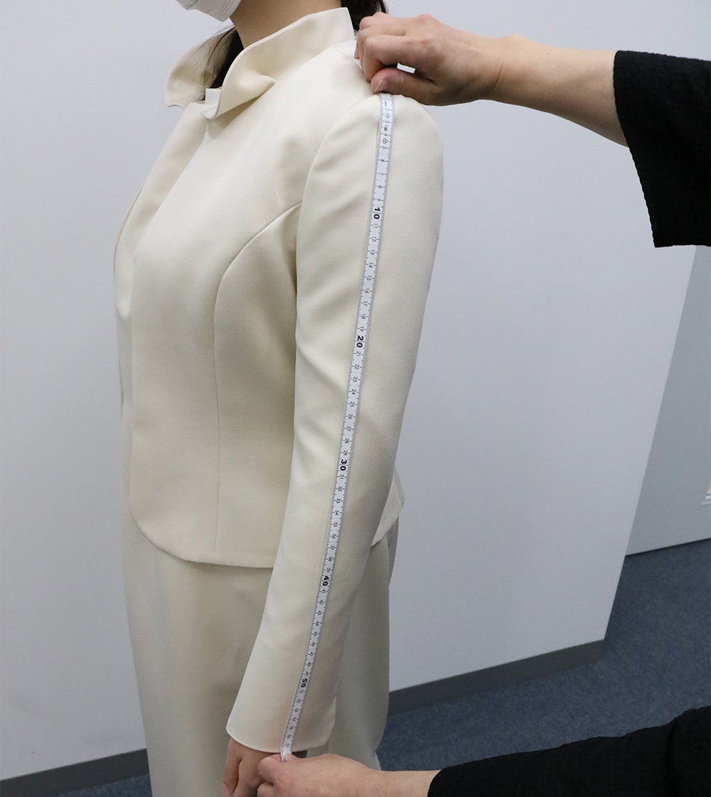 専任のフォーマルコンシェルジュが袖丈・着丈・ウエスト寸法の採寸を行います。
