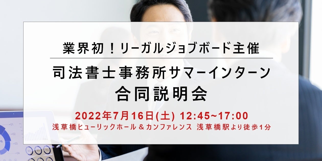 業界初!「司法書士事務所サマーインターンシップ」に向けた「合同説明会」を、リーガルジョブボードが7/16に開催