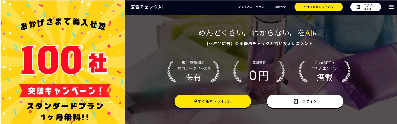 「広告チェックAI 生成AI連携サービス」利用登録企業100社突破!
