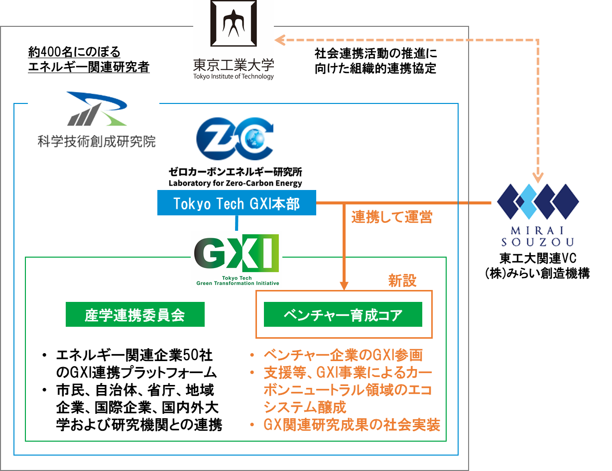 ゼロカーボンエネルギー研究所 GXI ベンチャー育成コア 関係組織図