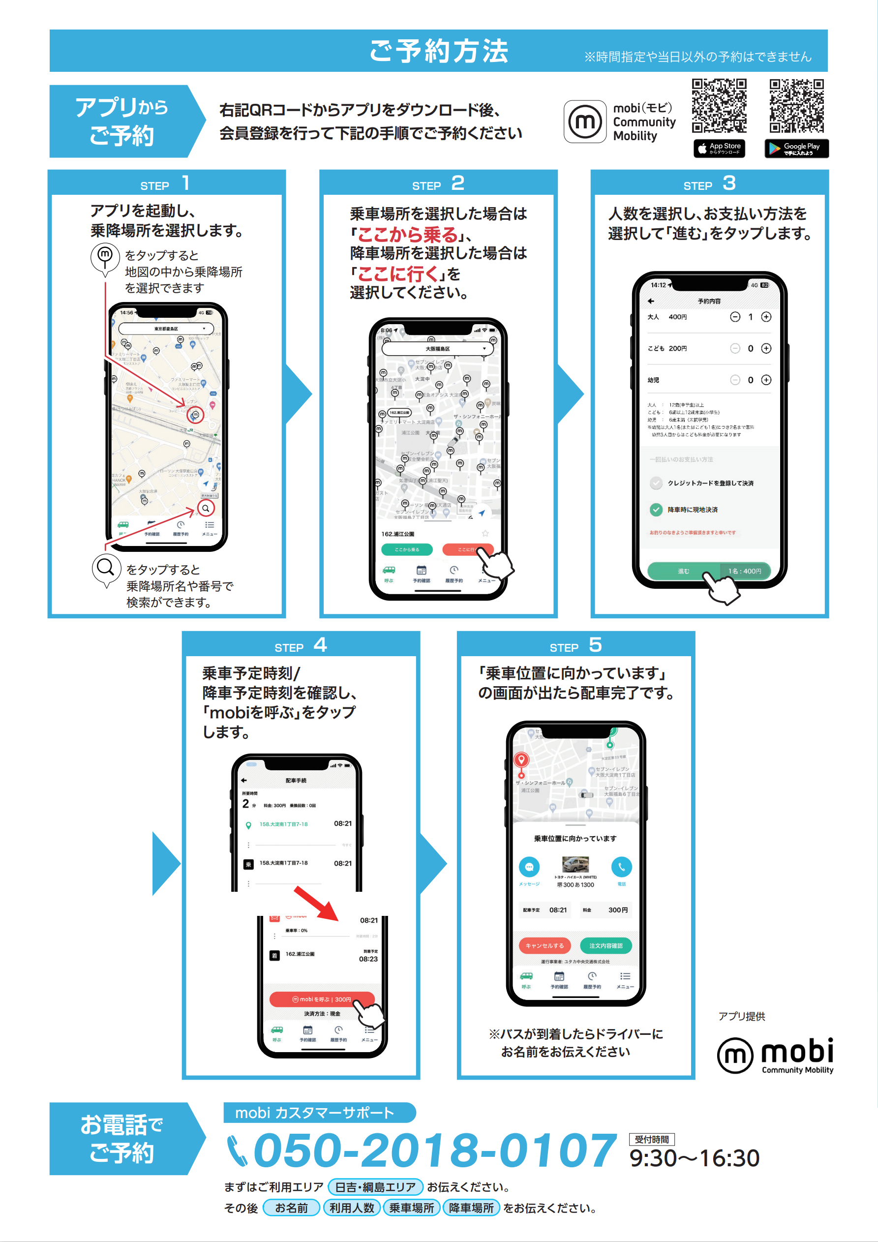 ※6 mobi(モビ):呼べば来る、エリア定額乗り放題サービス|MaaS|WILLER TRAVEL