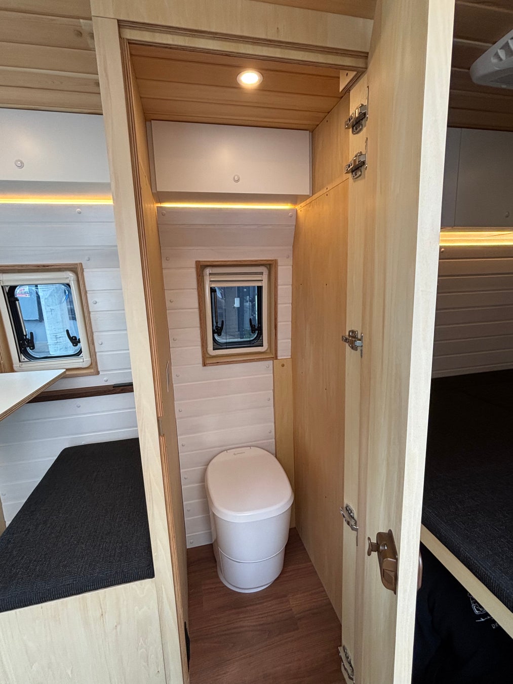 120V仕様の高出力クーラーを搭載し、季節を問わず快適な車内環境を維持。