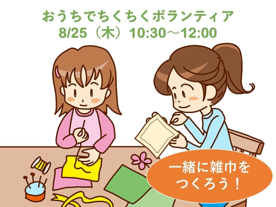 8/25開催!おうちでできるボランティア!ぞうきんを縫って被災地を助けよう!