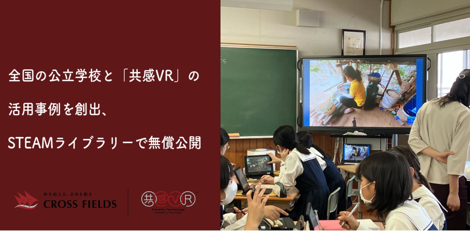 NPO法人クロスフィールズ(以下、クロスフィールズ)は経済産業省「未来の教室」実証事業受託者として「VR/360度映像を活用し、社会課題への理解を深めるデジタル教材」を10コンテンツ開発しました。令和4年度は日本各地の中学校・高校と同教材の活用事例の創出に取り組むとともに、探究学習等への有効性を確認。これらの教育現場での活用事例が、このたび「未来の教室」STEAMライブラリーに無償公開 されましたのでお知らせします。