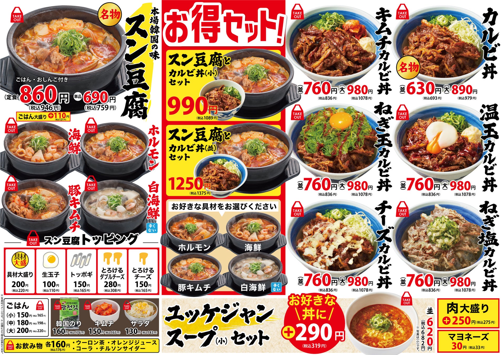 『韓丼』看板商品!2大名物の“カルビ丼” と “スン豆腐”