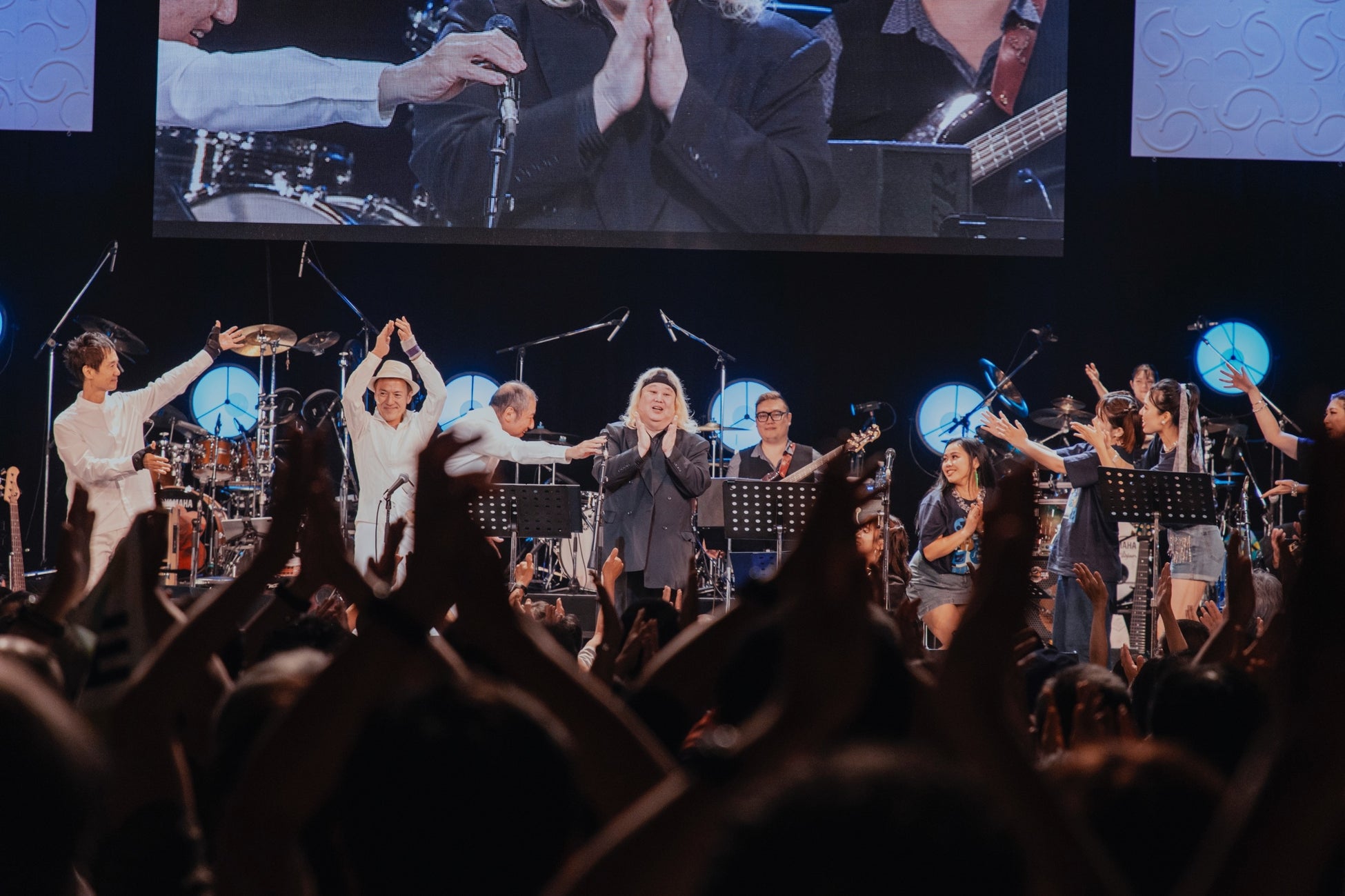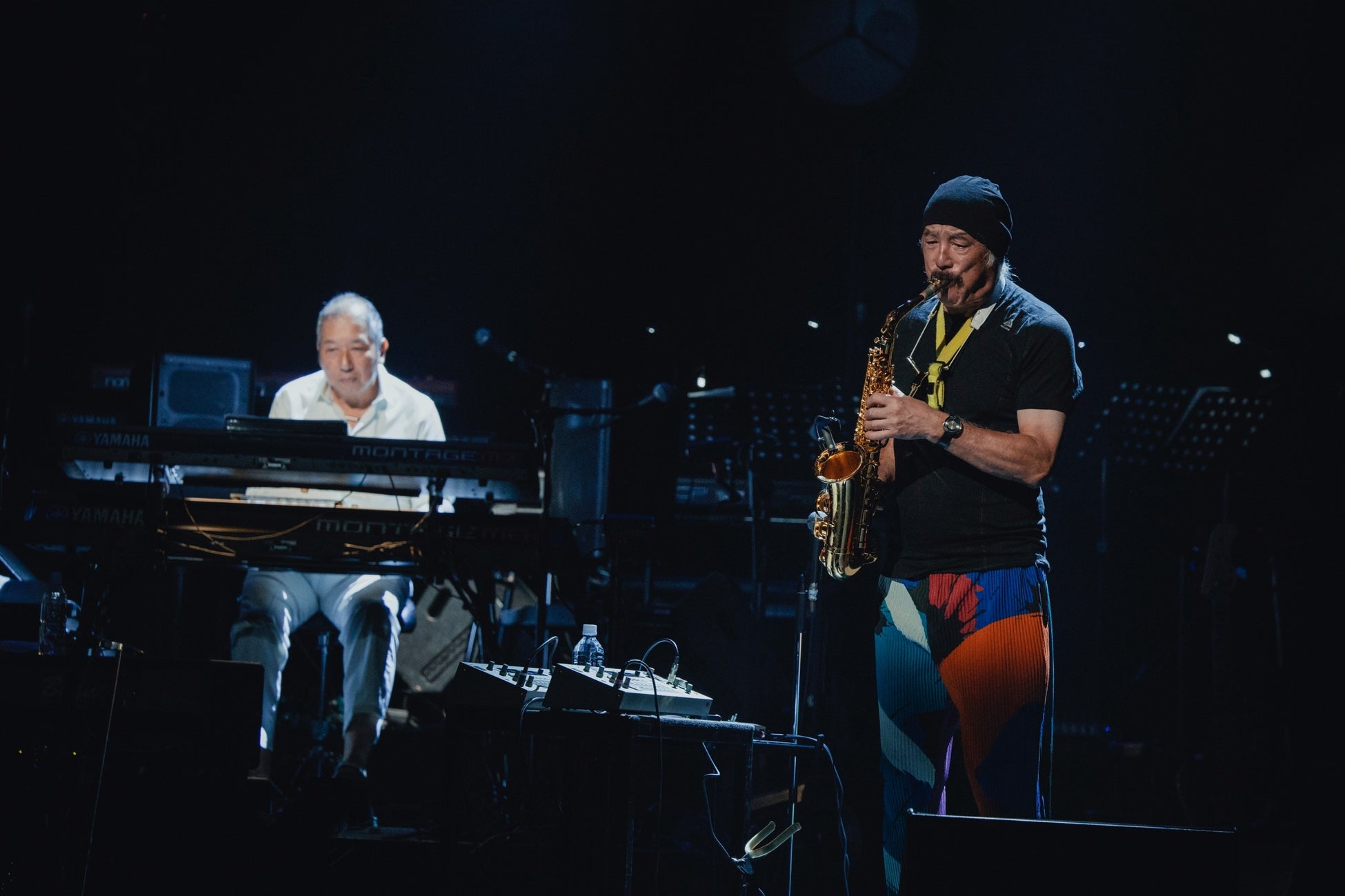 やがて、向谷の抒情的なキーボード·プレイが始まると、そこに合流したのは、T-SQUAREの伊東たけし(sax)。曲目は、T-SQUAREがザ·スクエア時代に発表した「Forgotten Saga」です。’70年代後半から日本のフュージョン~インストゥルメンタル·ポップ·シーンを牽引してきた向谷と伊東がデュオで奏でるバラードが、「一音も聞き逃したくない」とばかりに静まった場内に響き渡ります。演奏が終わった後に巻き起こった拍手は、まるで大きな波のようでした。