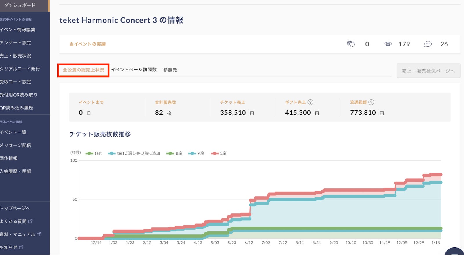 この度の調査結果から、SNSなどを活用した継続的なイベント告知、イベント当日に向けて話題を最大化させるアプローチが大切だと考えます。teketでは、販促やプロモーションの効果測定ができる機能など、チケット販促や売上に繋がる機能をご用意しております。