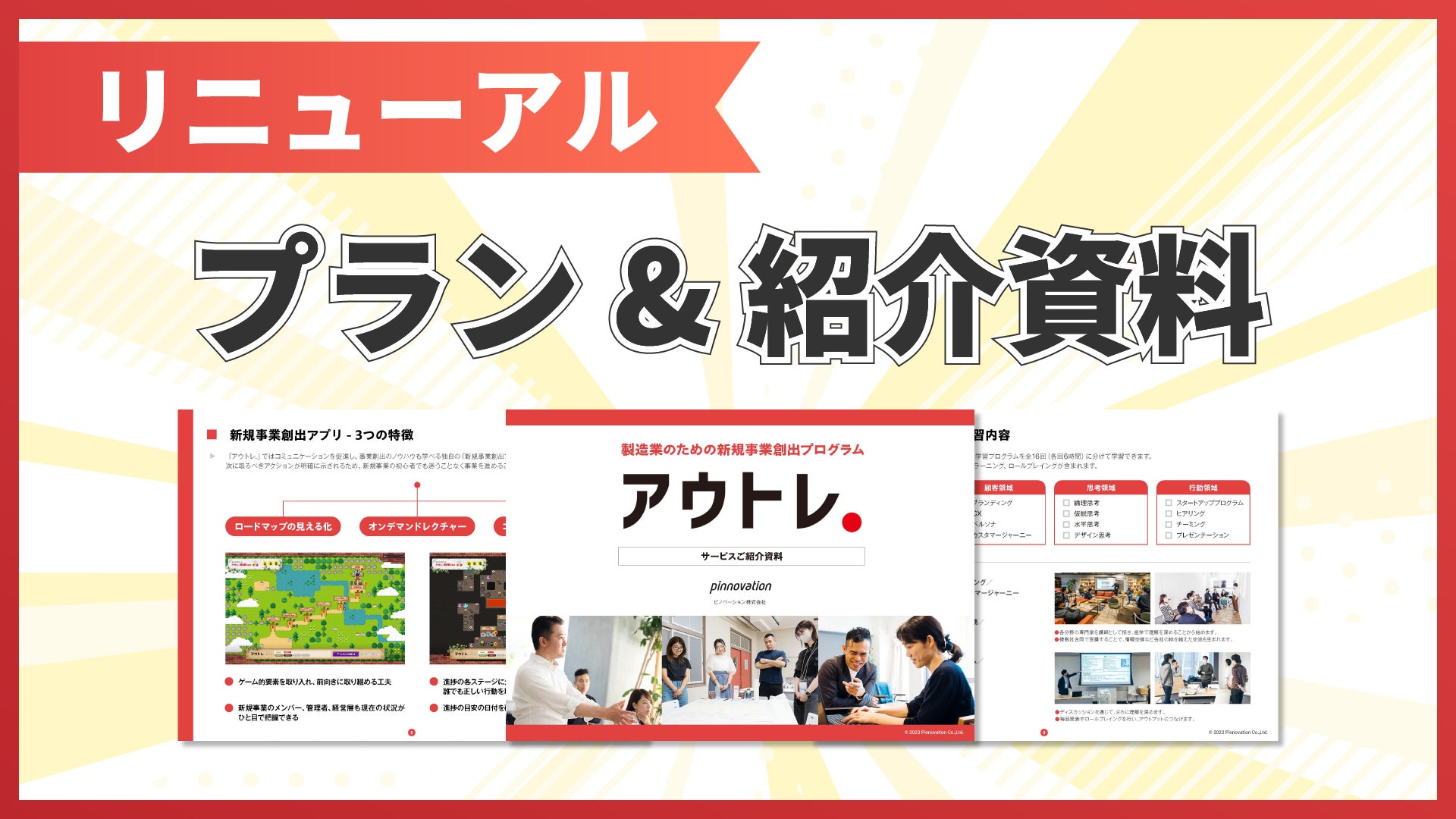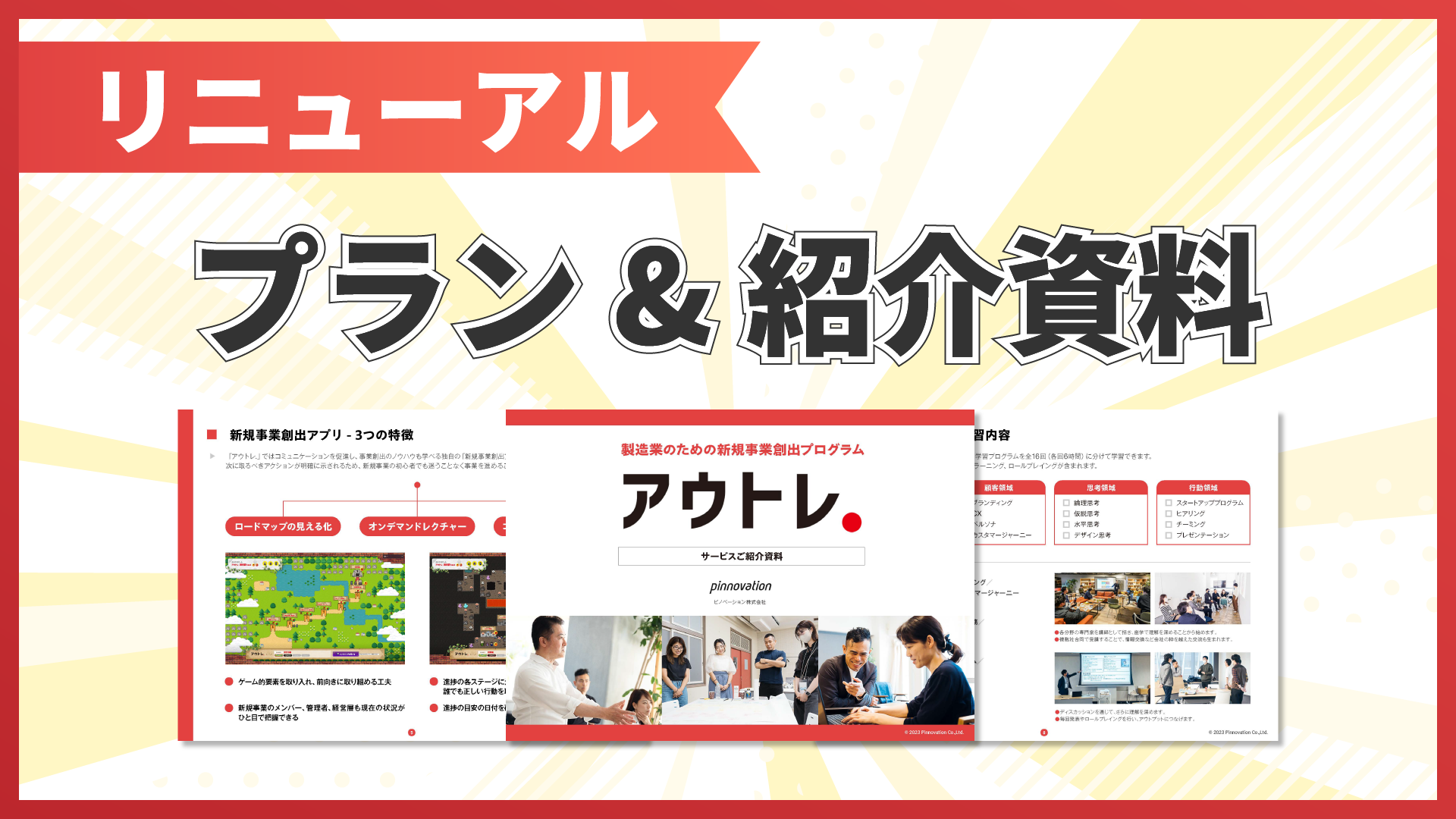 ピノベーション株式会社(名古屋市西区、代表 鳥羽伸嘉)は、製造業に特化した新規事業創出プログラム「アウトレ」の既存価格の見直しと、新プランをリリース致しました。