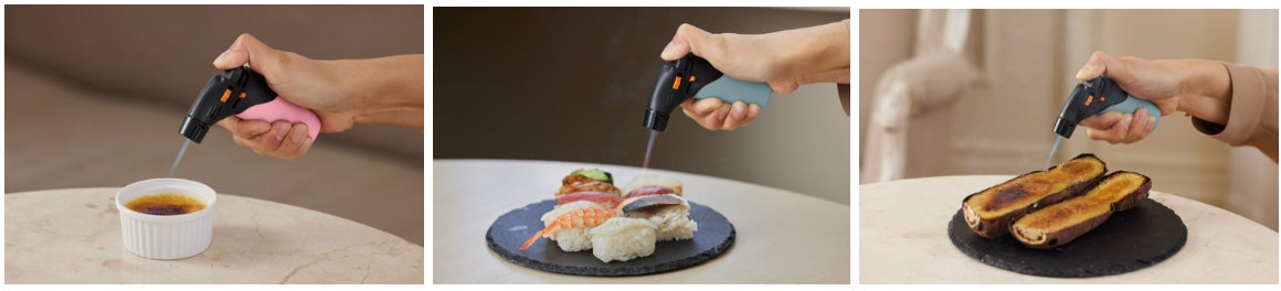 気軽に“炙り“の演出を加えることで、手軽に本格的な味わいを楽しむことができる優れモノです。“炙る“ひと手間で、様々な料理をワンランクアップさせることができます。