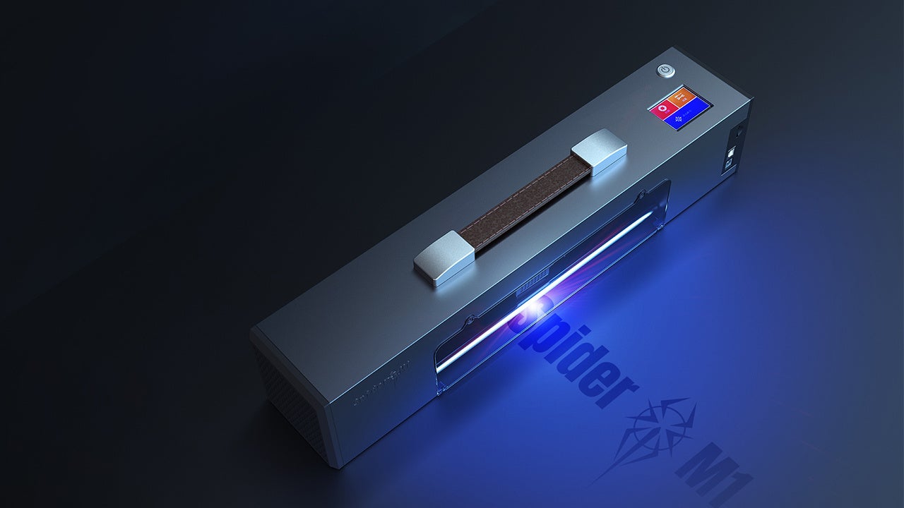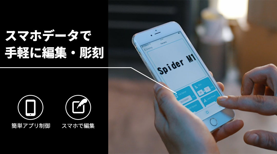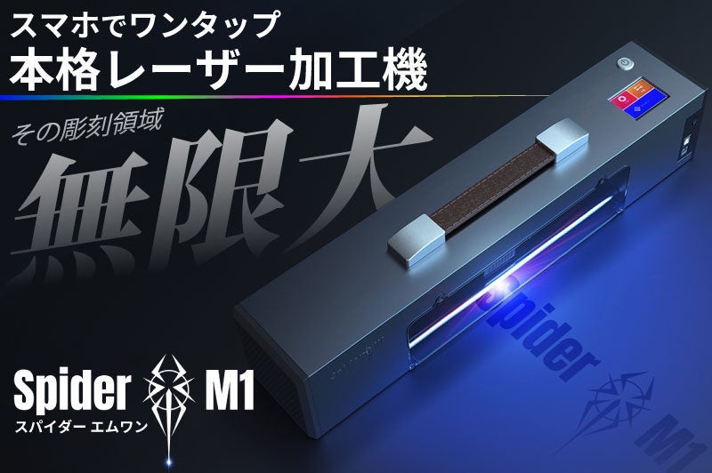 スマホで簡単操作のポータブルレーザー彫刻機&カッターSpider M1。 彫刻機とは思えないコンパクトな設計かつ組み立て不要で手軽にプロ仕様の彫刻&切断が行えます。