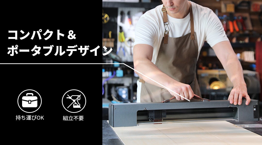 彫刻機とは思えないコンパクトな設計。持ち運びも楽にでき、プロ仕様の彫刻&切断が手軽に行えます。 一体型設計により、組み立てが不要です。