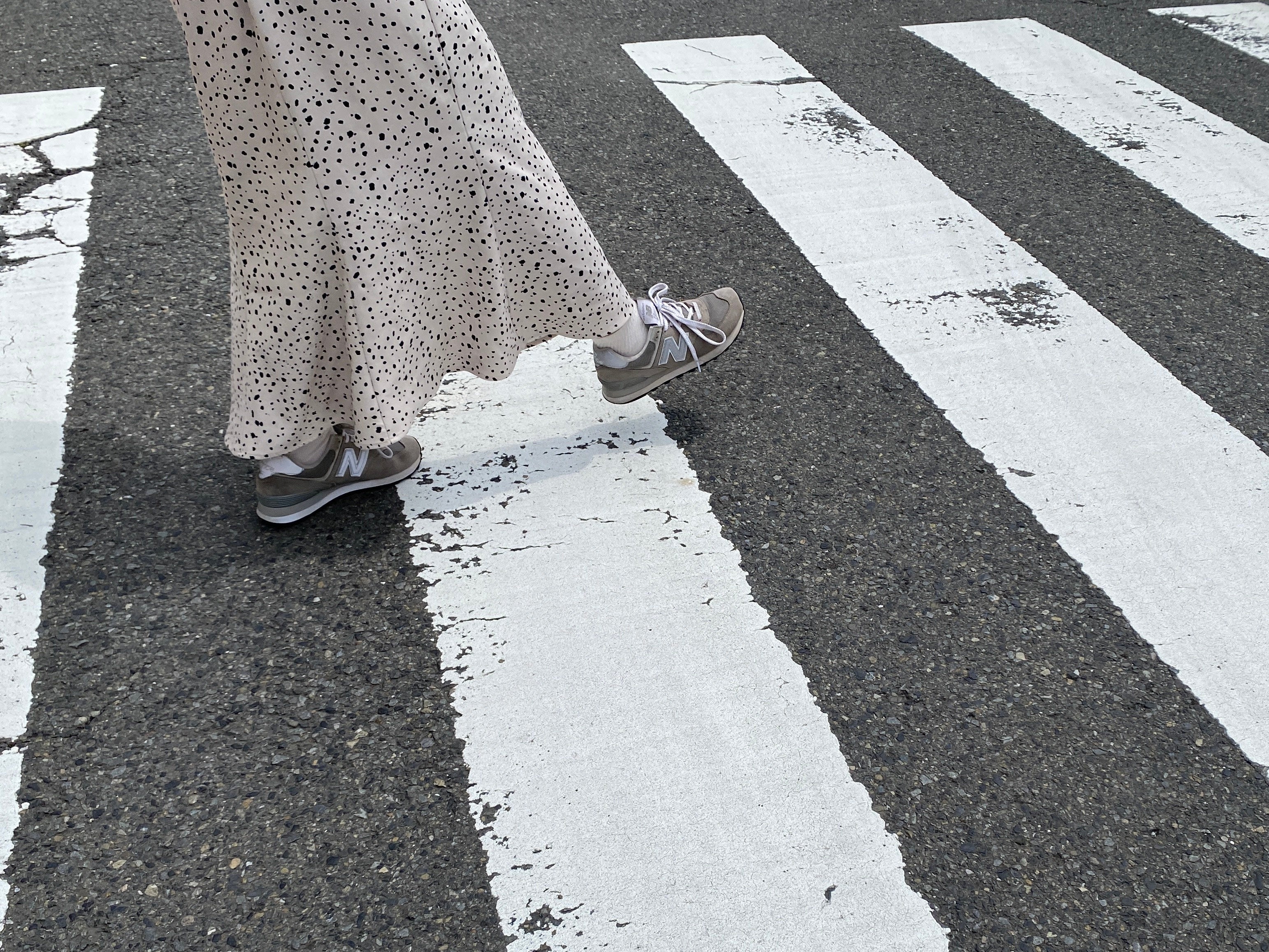 歩く時の歩幅を測る指標として、身近なものをご紹介します。それが「横断歩道」です。歩行時の人の歩幅の平均は「身長✖️0.45」と言われています。155cmの女性の方なら、155cm✖️0.45=69.75cm、つまり70cm(つま先から爪先までの長さ)です。