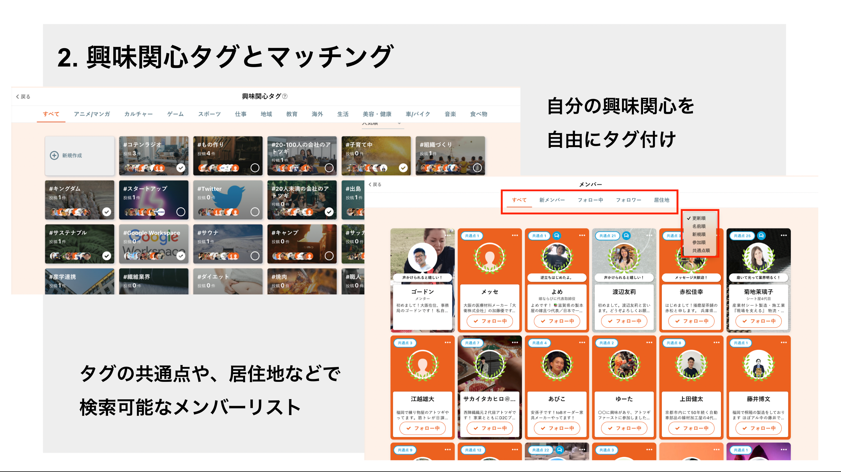 ・プロフィール機能を活用した共通点の多いメンバーの可視化