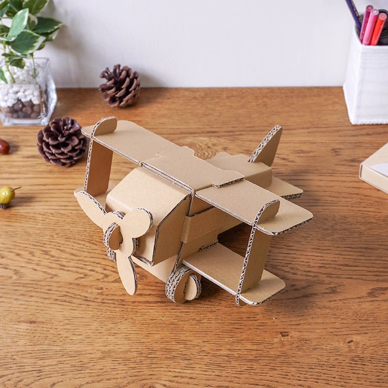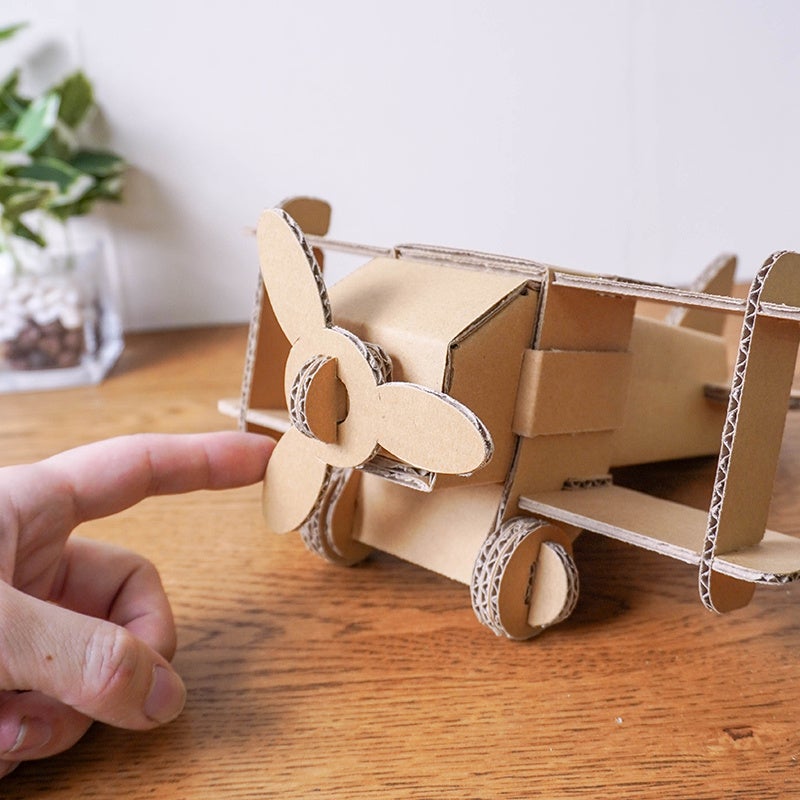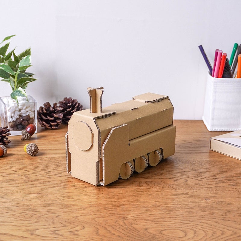 ダンボール製工作キットに飛行機と機関車が新登場。家庭やイベントで楽しめ、遊んだ後はリサイクルできSDGsにも貢献。