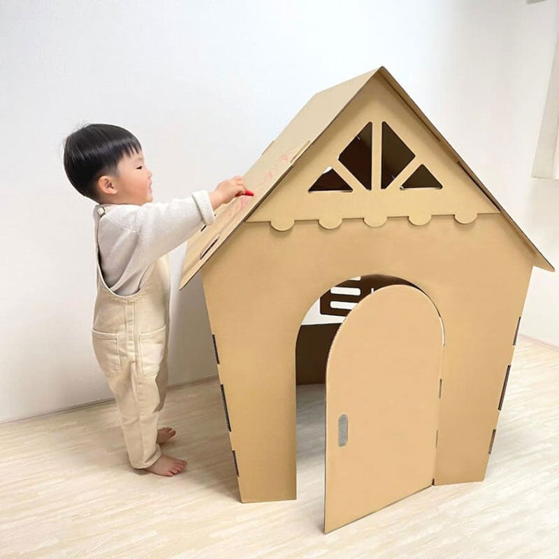組み立てには接着剤や工具は不要で、遊具はすべてダンボールのみで構成されています。環境にも配慮しており、不要になった際は資源ごみとしてリサイクル可能です。